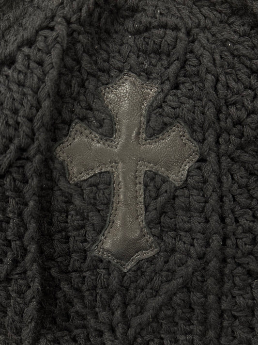 Chrome Hearts Cashmere Leather Cross Patch Knit Beanie