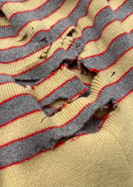 AW2024 Enfants Riches Deprimes Distressed Cashmere Striped Short Sleeve Sweater
