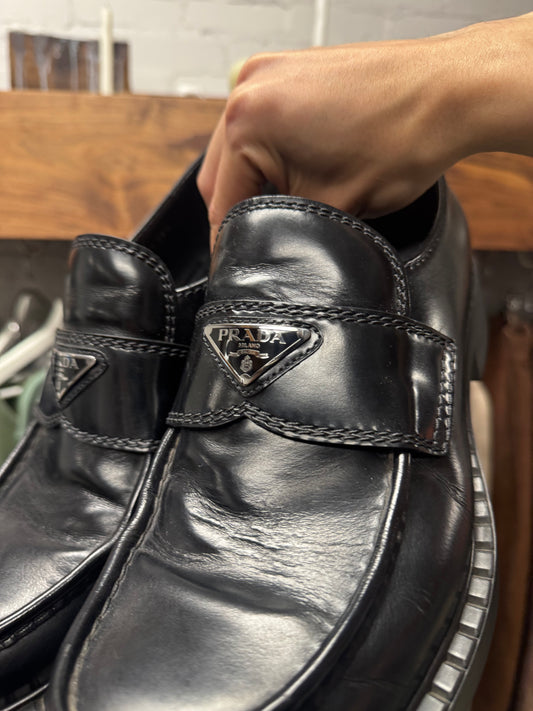 Prada ‘Spazzolato’ Platform Calfskin Leather Loafers