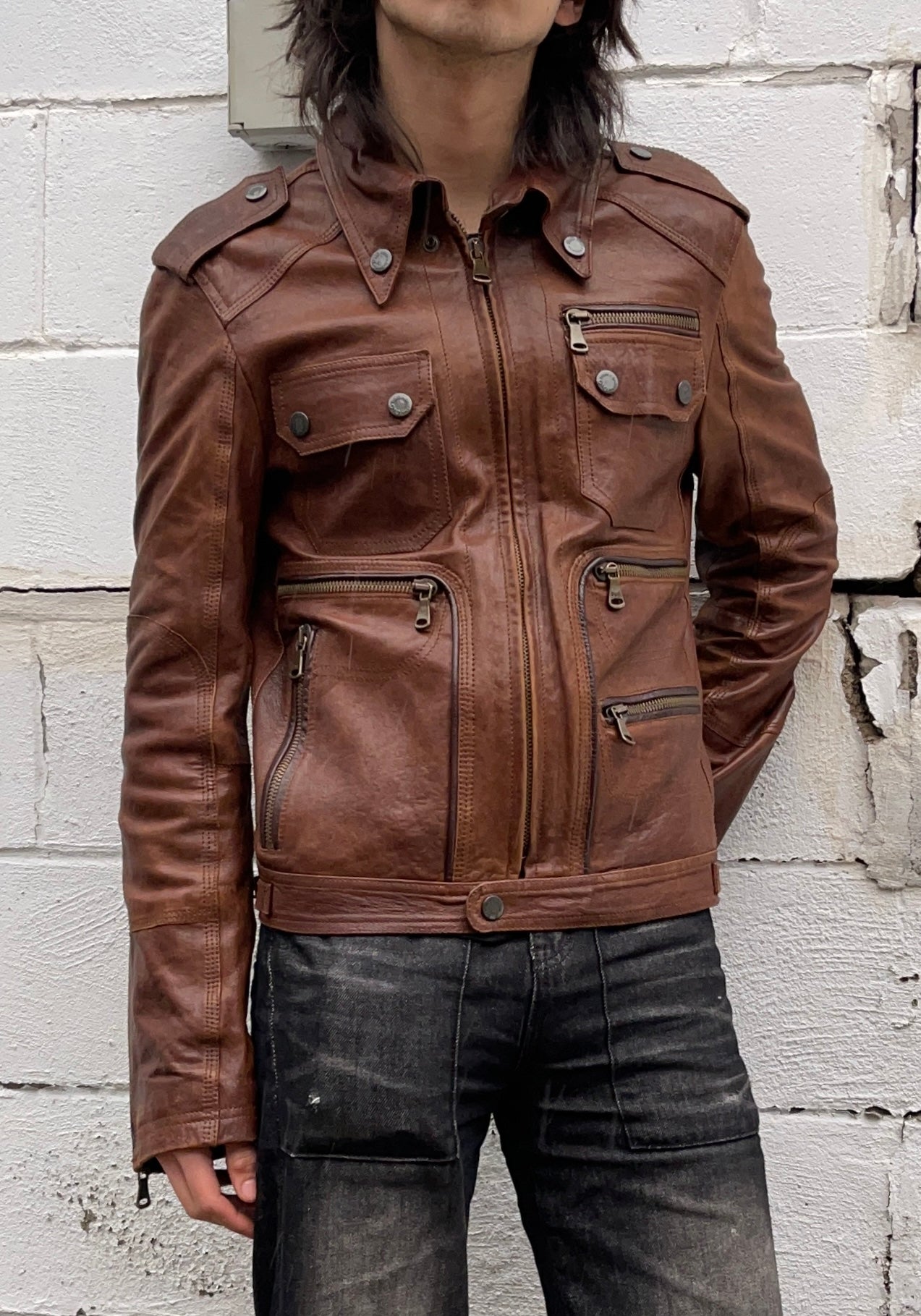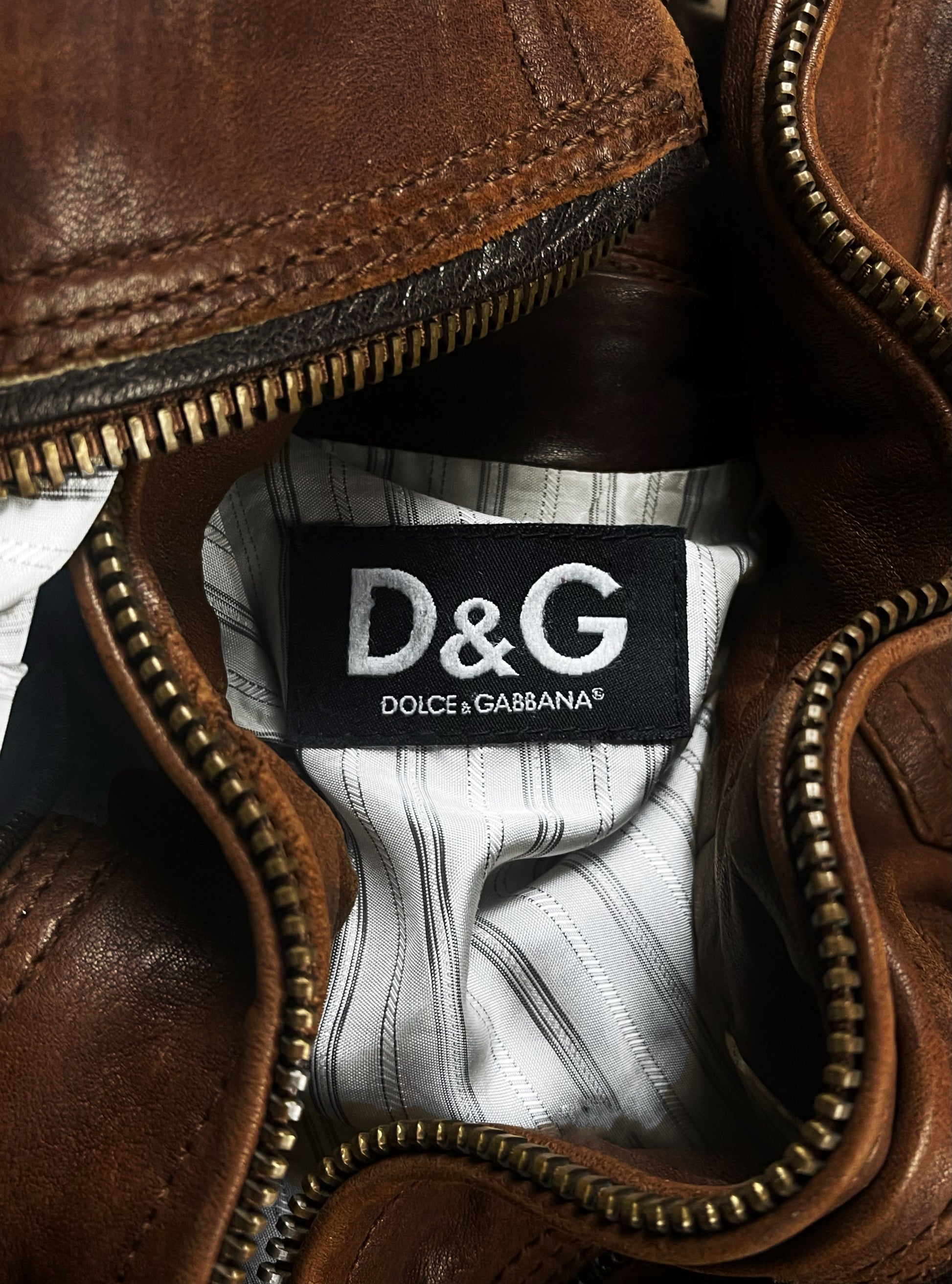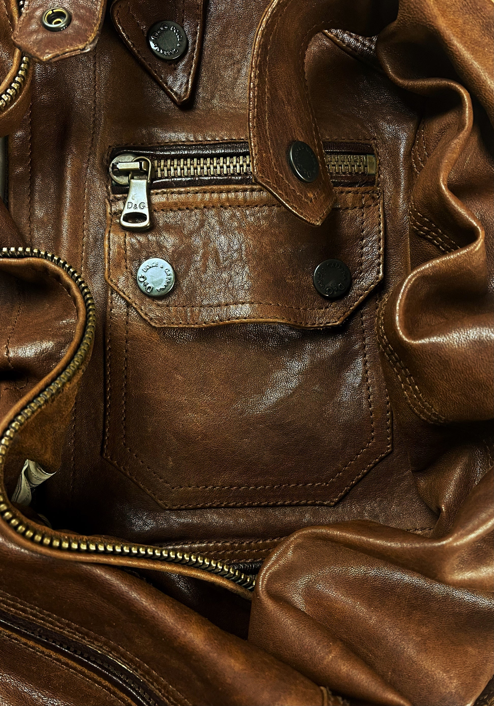 (FOR SALE) A 2000’s Dolce & Gabbana Calfskin Leather Multi-Pocket Collared Leather Jacket.