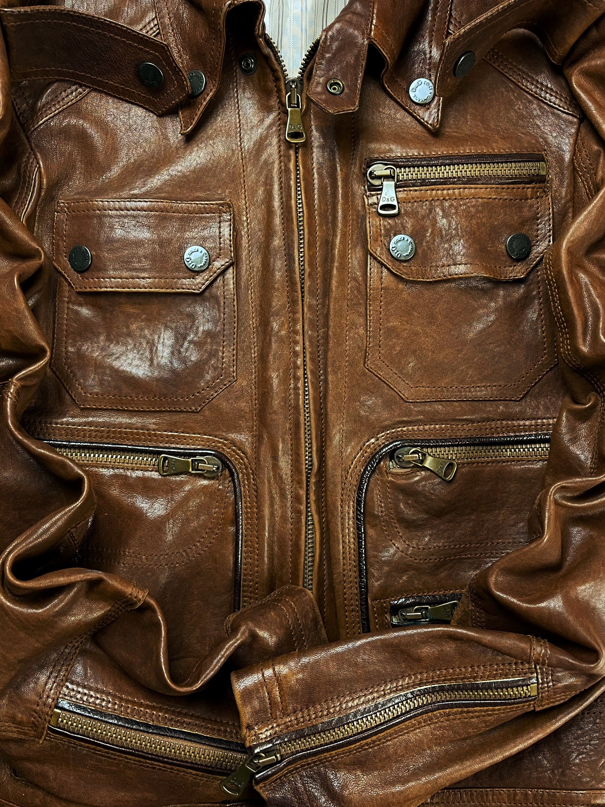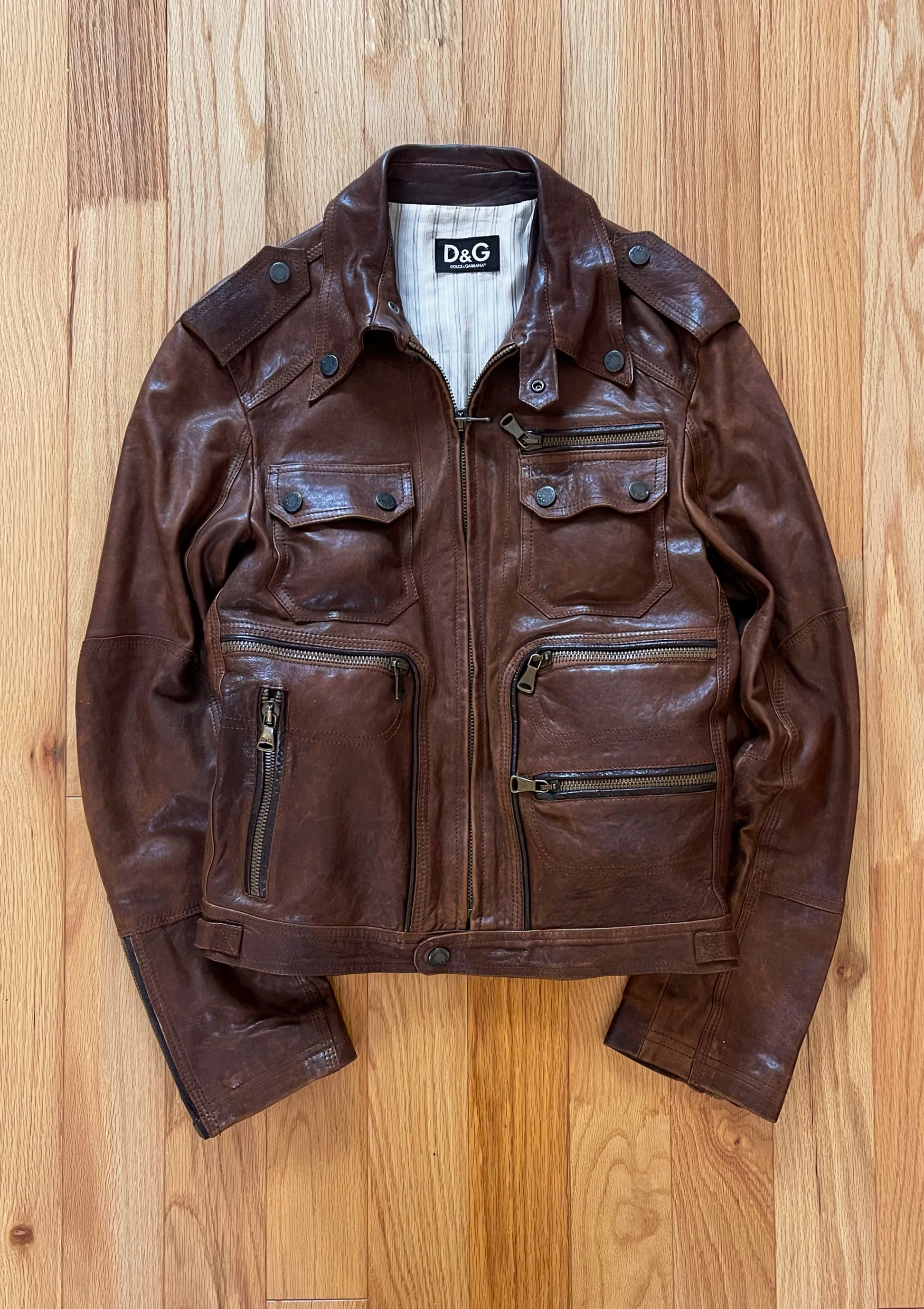2000’s Dolce & Gabbana Calfskin Leather Multi-Pocket Collared Leather Jacket.