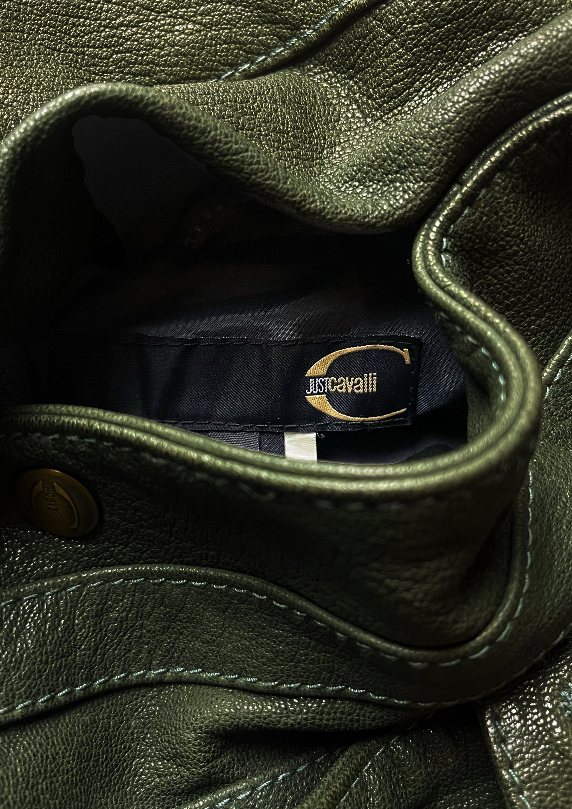 2000’s Roberto Cavalli ‘Moss Green’ Cargo Pocket Leather Jacket