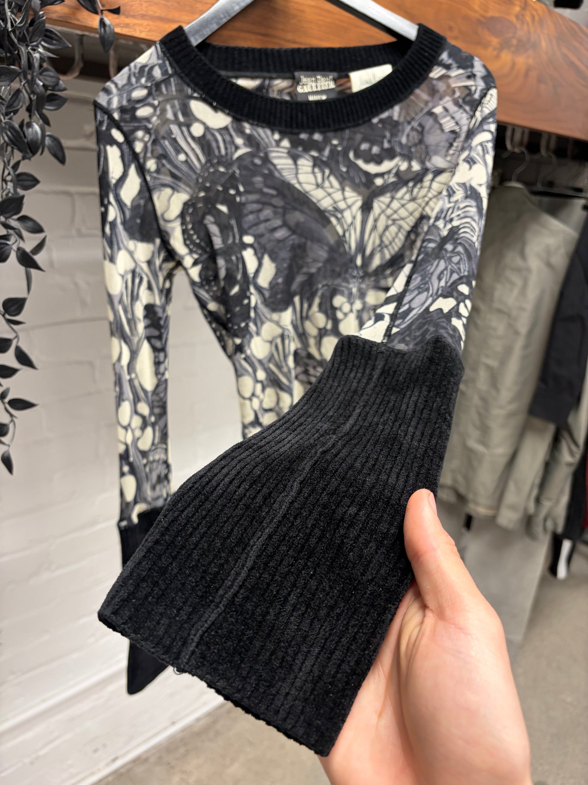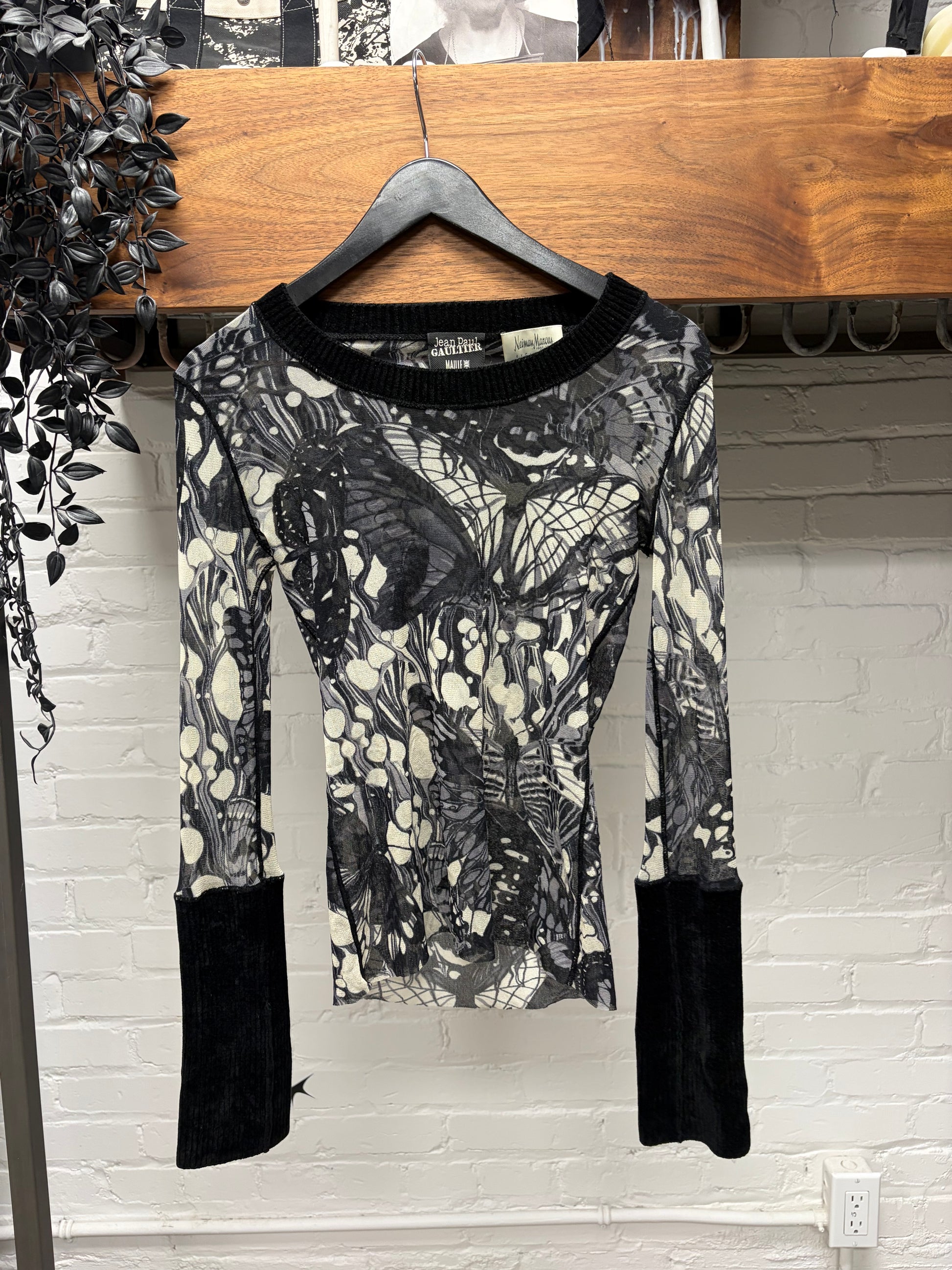 2007 Jean Paul Gaultier ‘Neiman Marcus Exclusive’ Butterfly Mesh Top with Ribbed Velour Cuffs