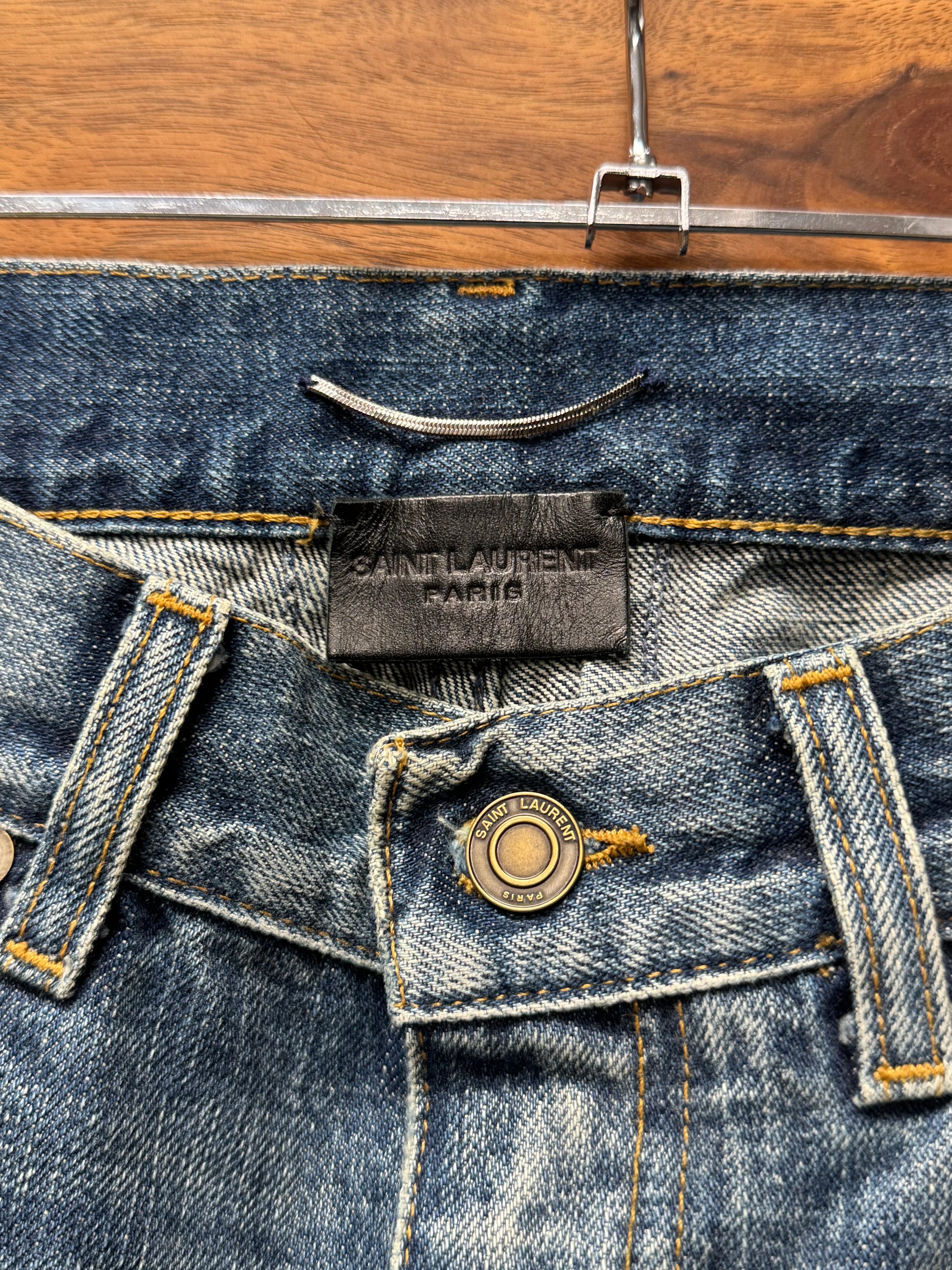 2015 Saint Laurent by Hedi Slimane ‘D02’ Knee Distressed Blue Skinny Jeans