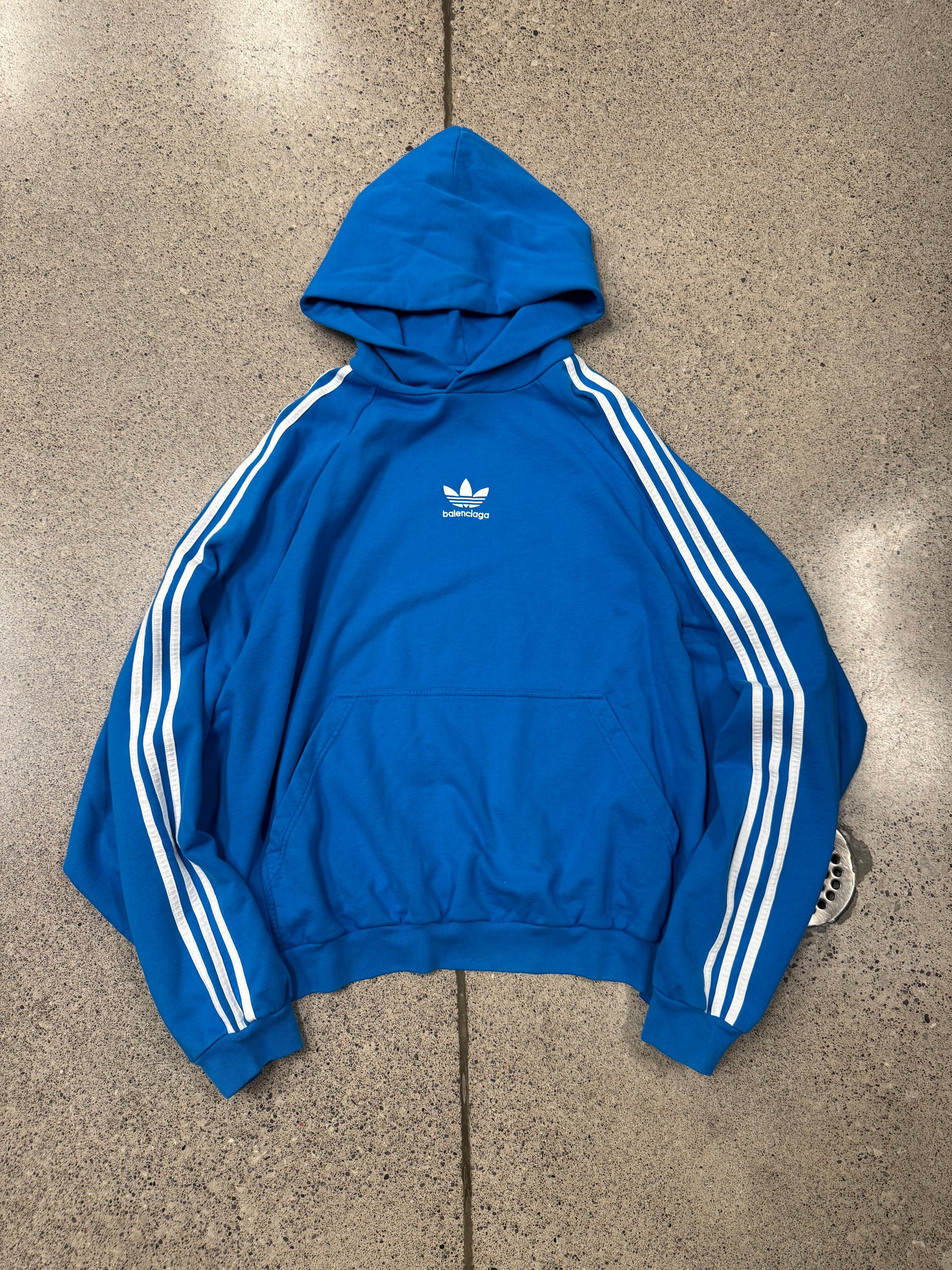 2022 Balenciaga x Adidas ‘3 Stripes’ Blue Pullover Hoodie