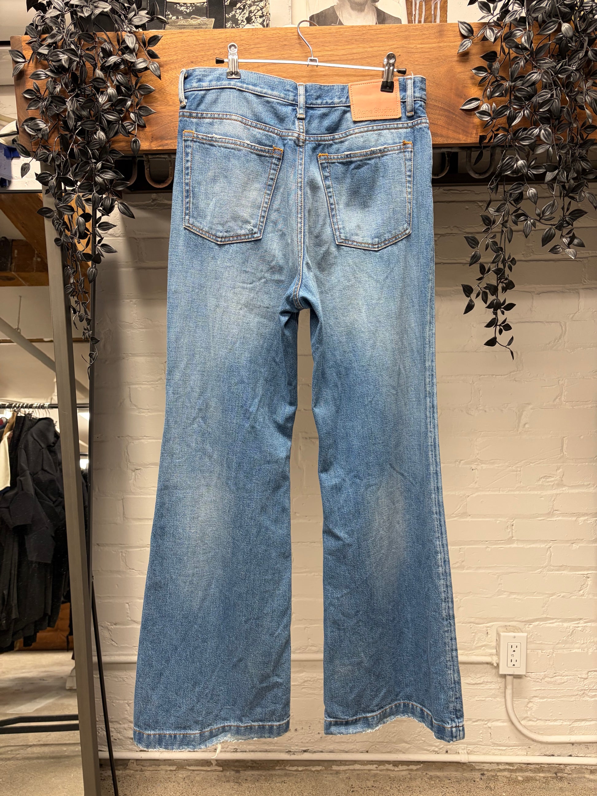 For sale is a pair of Acne Studios ‘2021M’ Flared Leg Washed Blue Denim