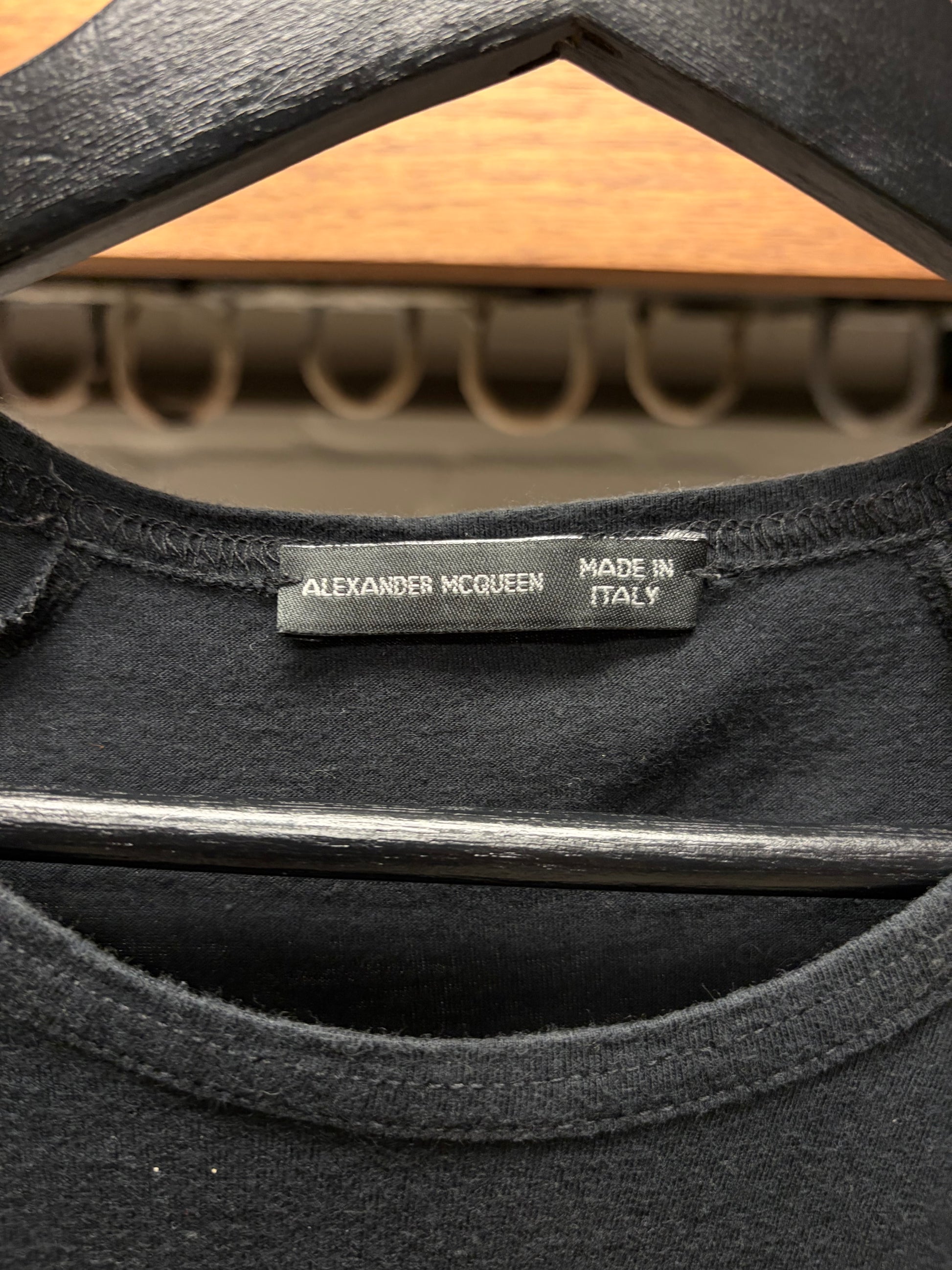 For sale is a 90s Alexander McQueen Cross Embroidered ‘Garden Logo’ Black T-Shirt