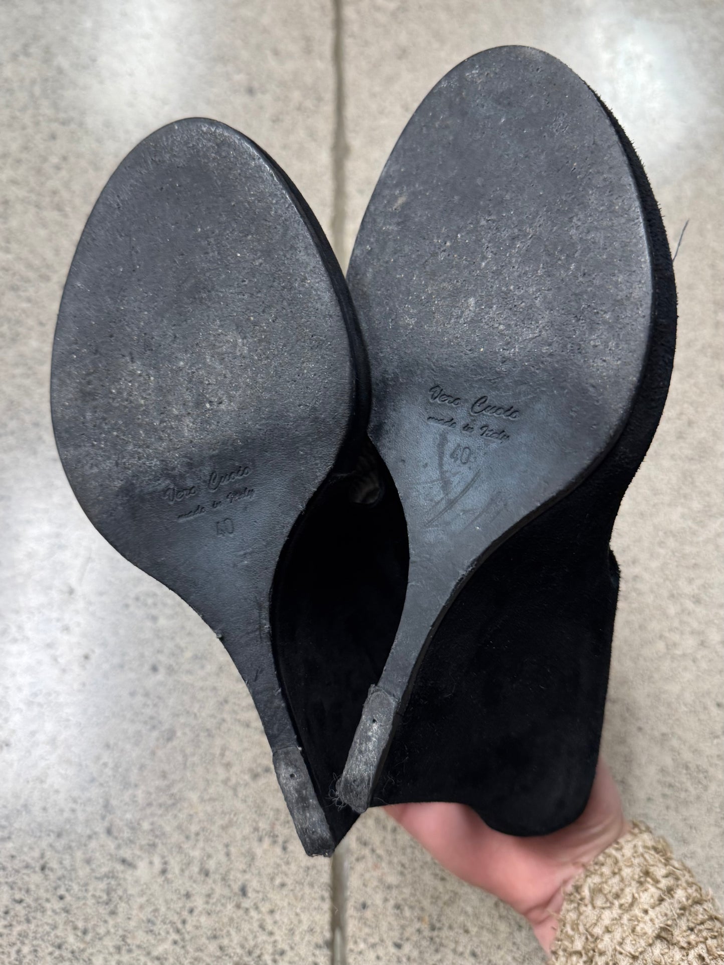 Ann Demeulemeester Black Suede Open Toe Wedge Heels