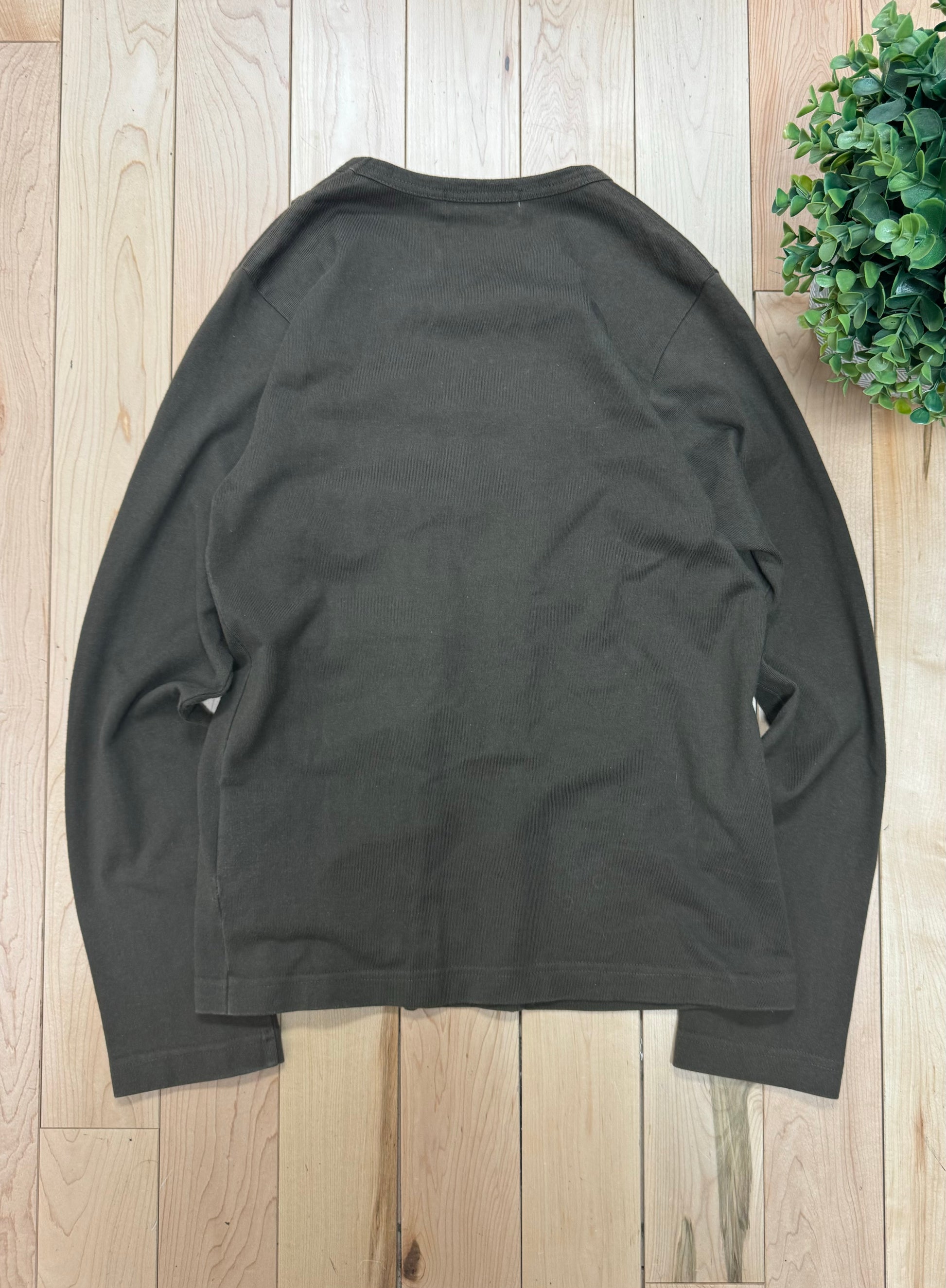 For sale is a beautiful Autumn Winter 2002 Comme Des Garçons 3D Panelled Brown Long Sleeve Top. Coming in a washed brown shirt that almost has a deep green hue, this piece features textured strips that create a depth inducing boxed effect throughout. Coming in a size small, this shirt is in pristine overall condition with no flaws. Here is the opportunity to purchase a gorgeous Comme Des Garçons shirt from over 20 years ago.