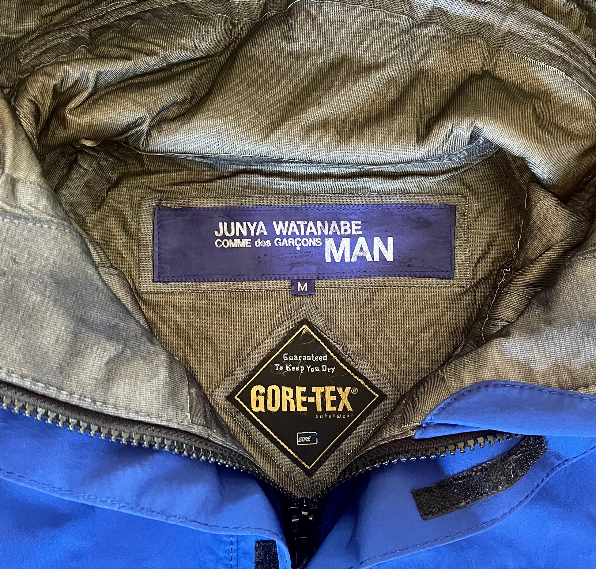 For sale is an Autumn Winter 2005 Junya Watanabe Gore-Tex Panelled Wool Hybrid Jacket. Coming in a classic royal blue and black color-scheme, this jacket features beautifully concealed pockets running up the side of the body. With wool hybrid sleeves varying heavily from the weather resistant Gore-Tex base, this jacket is a size medium and is in pristine overall condition with no flaws whatsoever. Here is the opportunity to purchase a gorgeous piece from Junya Watanabe’s Autumn Winter 2005 presentation.