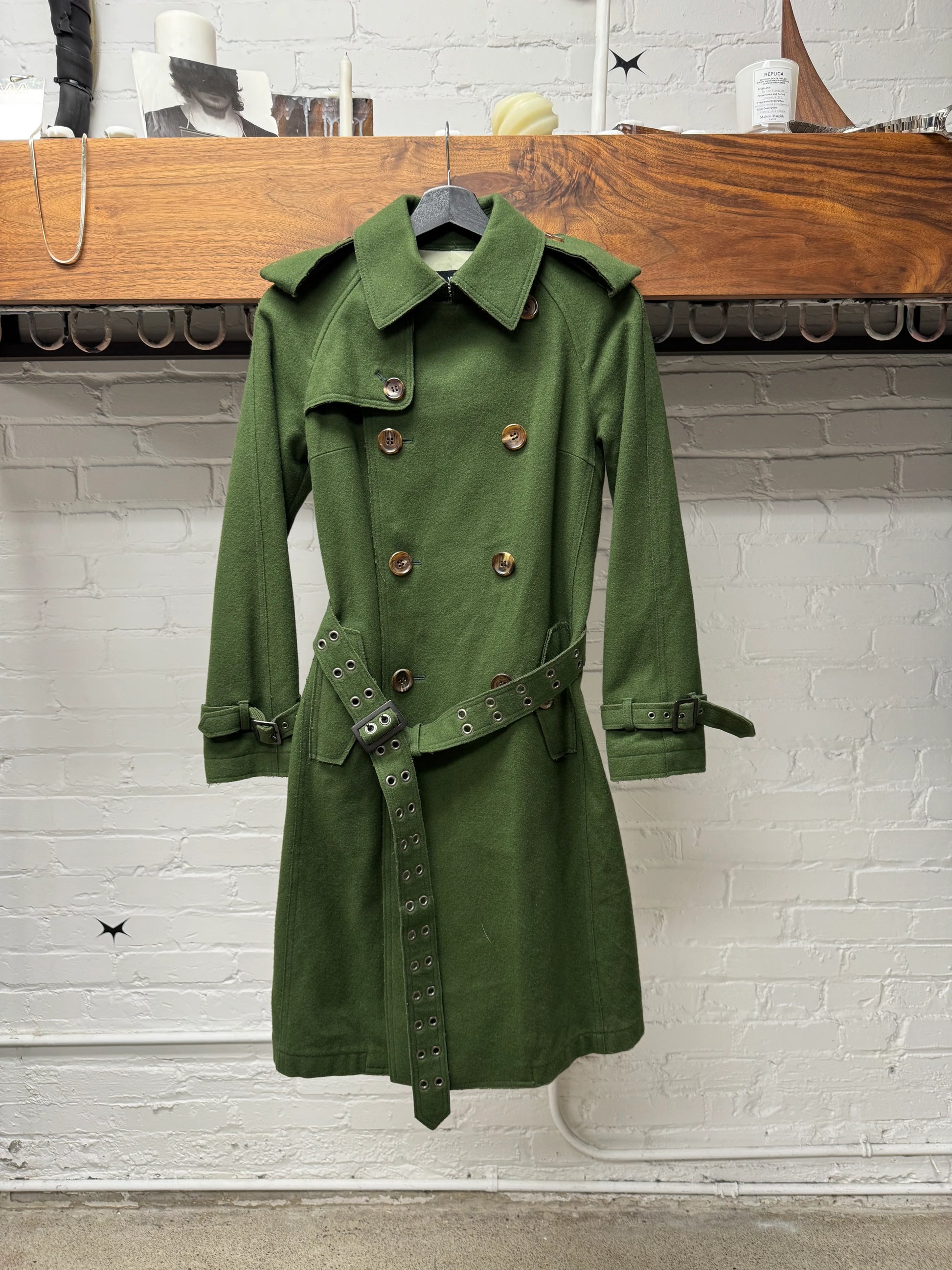 For sale is an AW2006 Junya Watanabe ‘Taxi Driver’ Distressed Green Wool Trench Coat