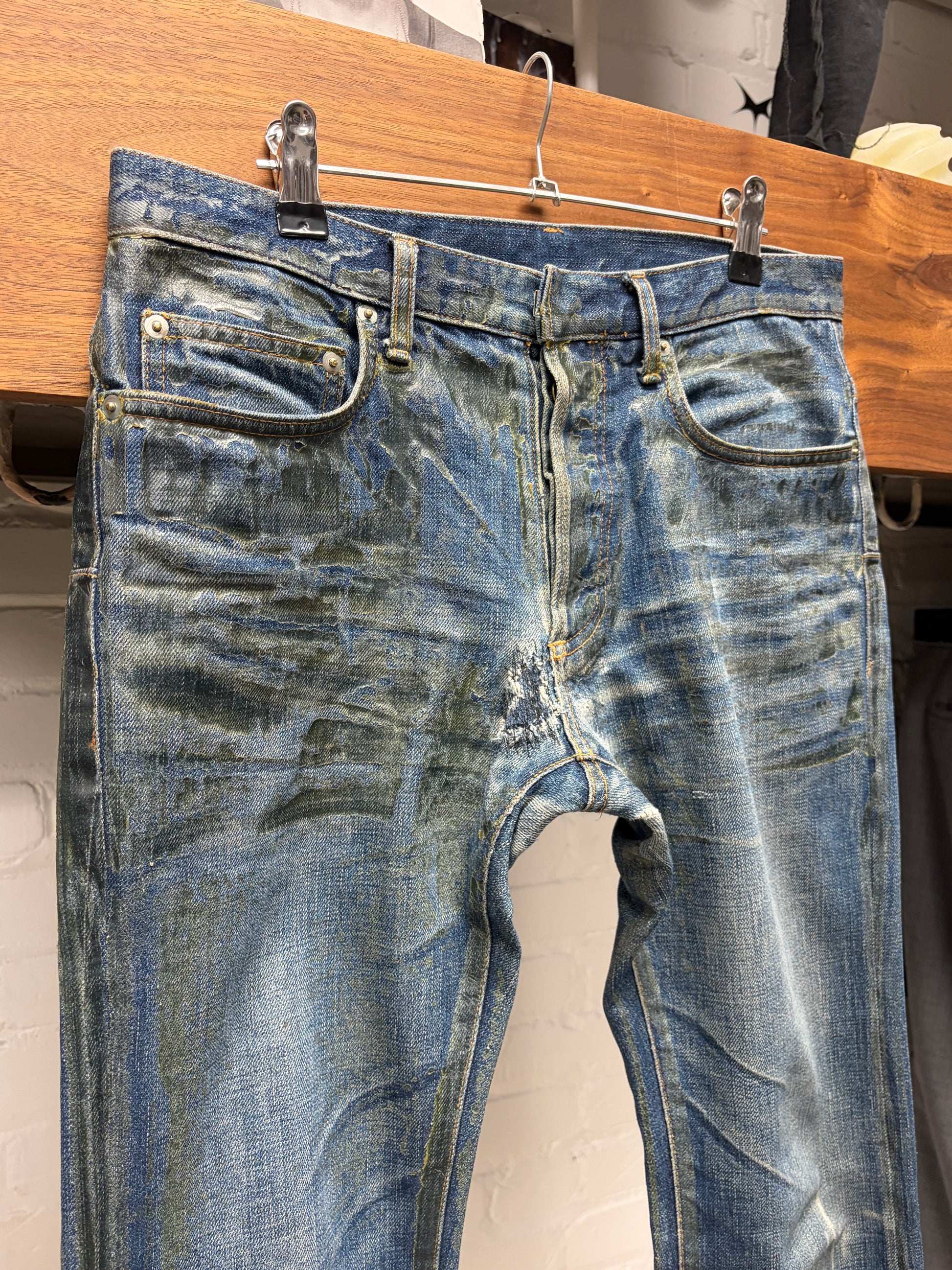 AW2008 Dior Homme ‘Luster’ Waxed Blue Skinny Jeans