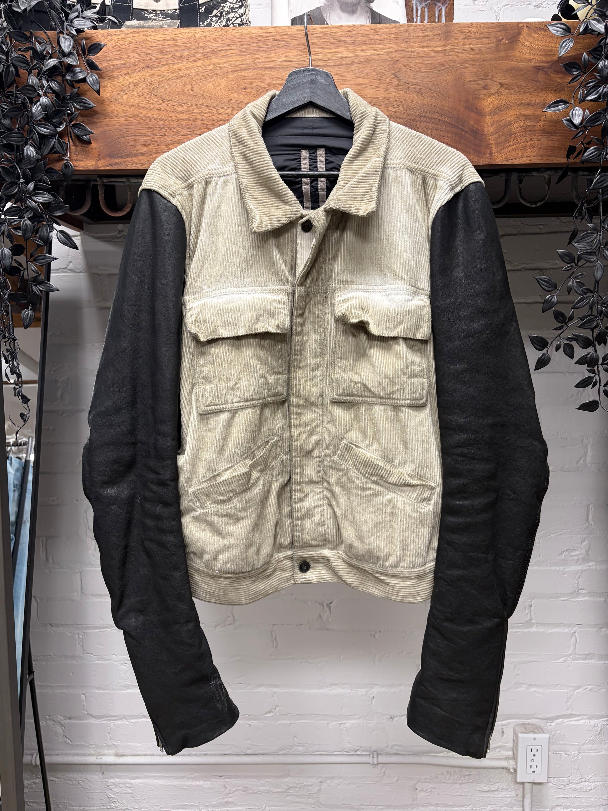 (FOR SALE) an AW2009 Rick Owens ‘Slave’ Dirty Corduroy/Black Leather Hybrid Trucker Jacket