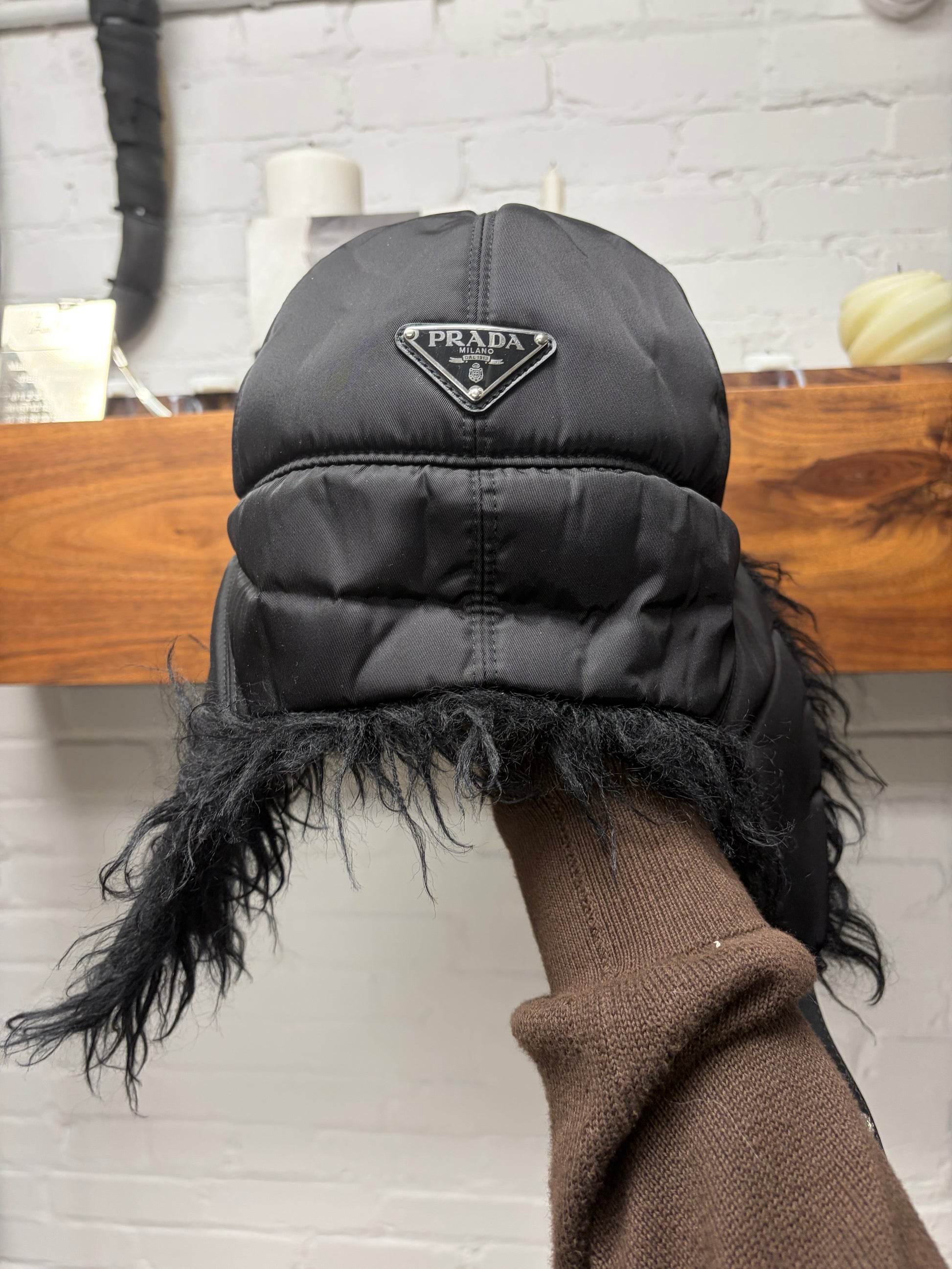 AW2019 Prada Black Fur Nylon Urshanka ‘Trapper’ Hat