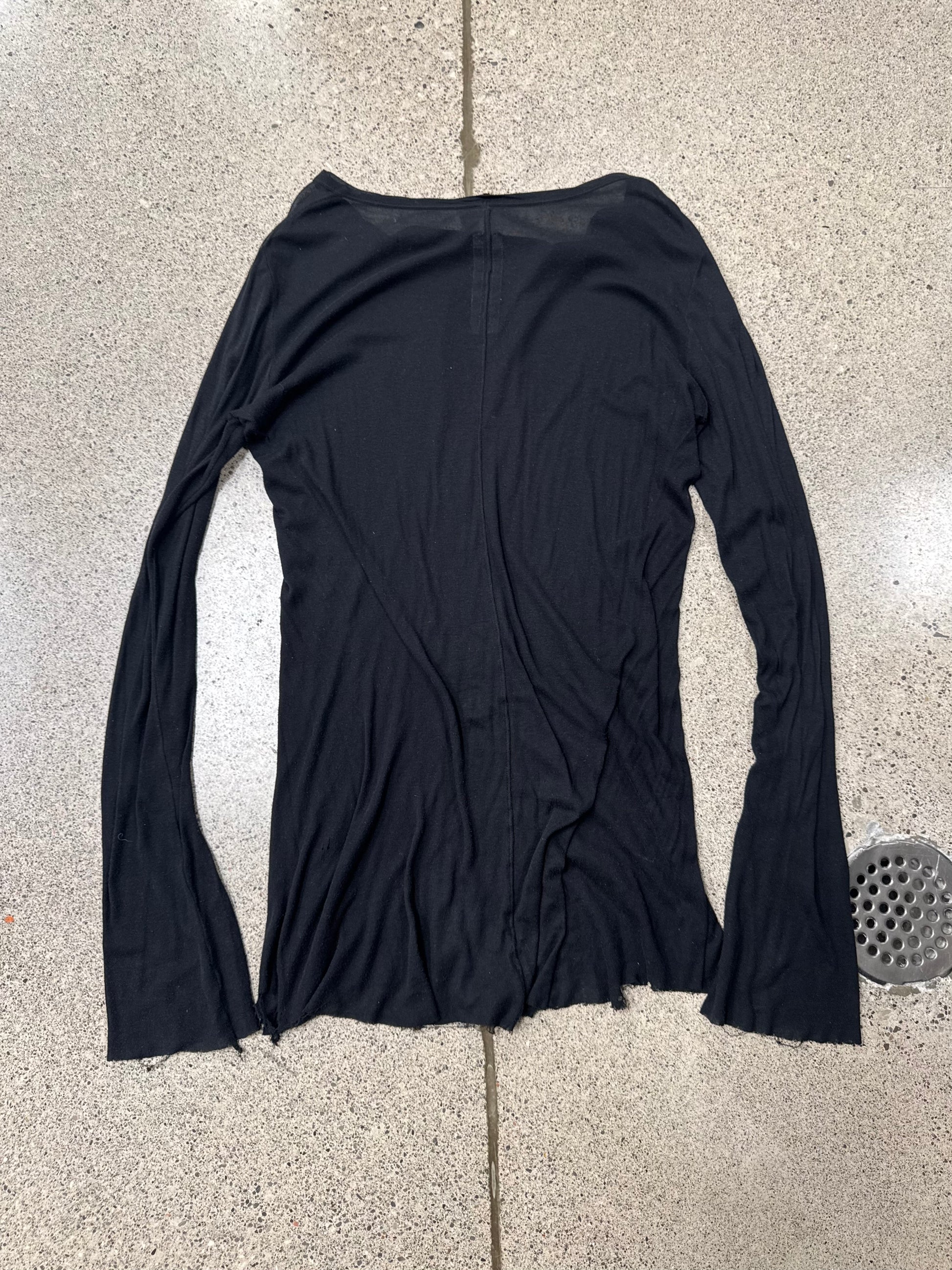 For sale is an AW2020 Rick Owens ‘Performa’ Black Semi Sheer Long Sleeve Shirt
