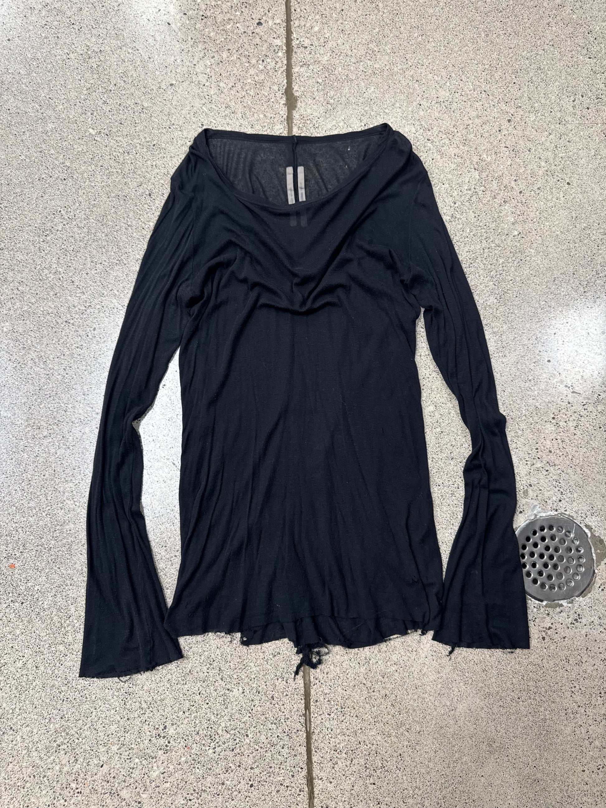 AW2020 Rick Owens ‘Performa’ Black Semi Sheer Long Sleeve Shirt