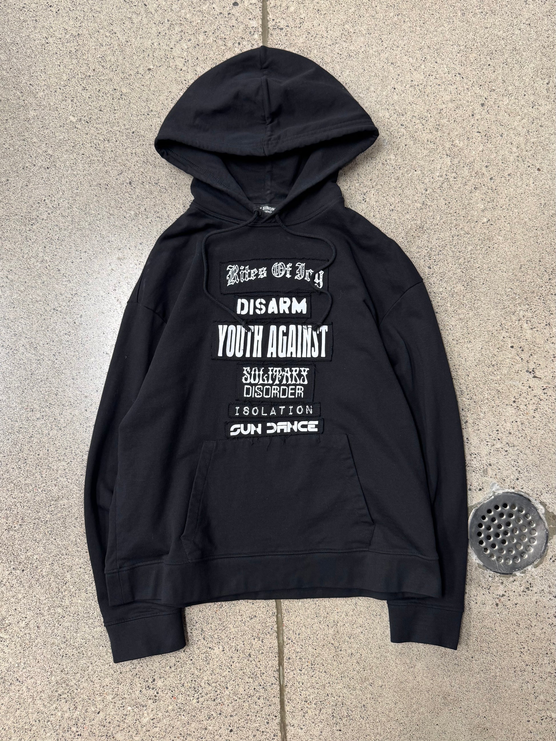 For sale is an Autumn Winter 2021 Raf Simons ‘Isolation’ Patch Pullover Hoodie.