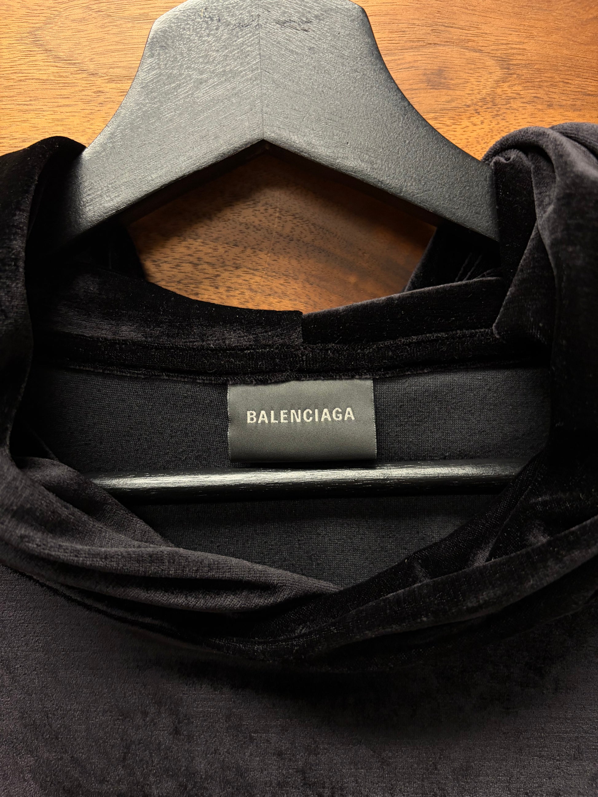 AW2022 Balenciaga Black Velour Pullover Hoodie