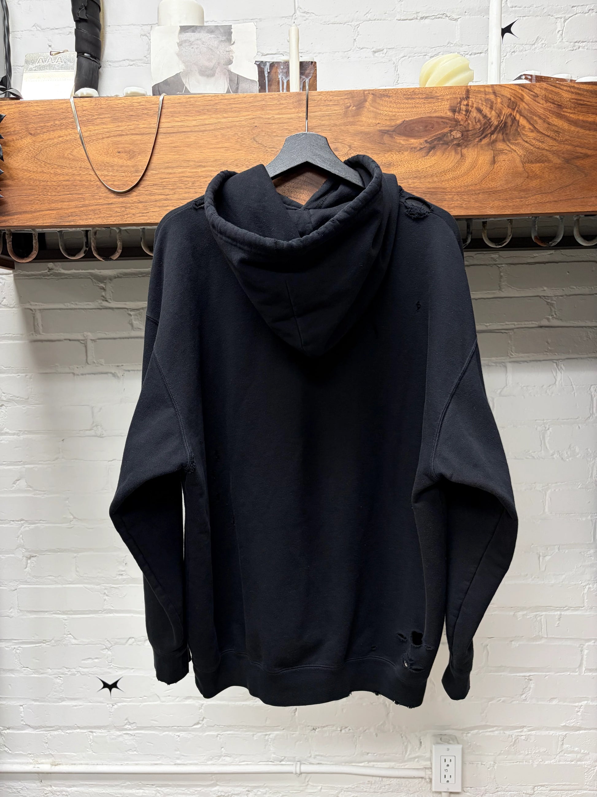 For sale is a 2021 Balenciaga Distressed Cotton ‘Paris’ Black/Orange Logo Hoodie