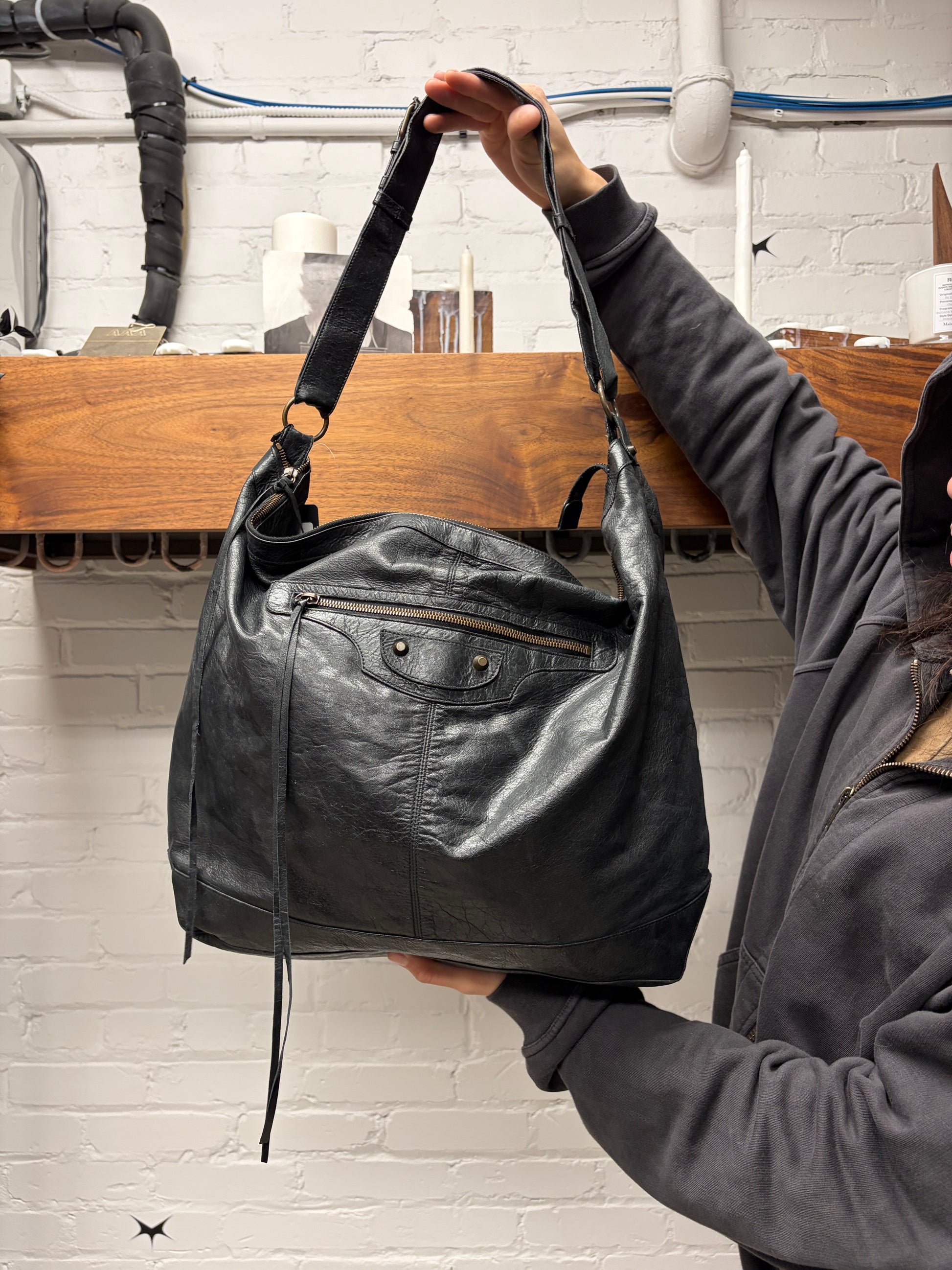 Balenciaga ‘Courrier XL’ Black Lambskin Leather Crossbody Messenger Bag