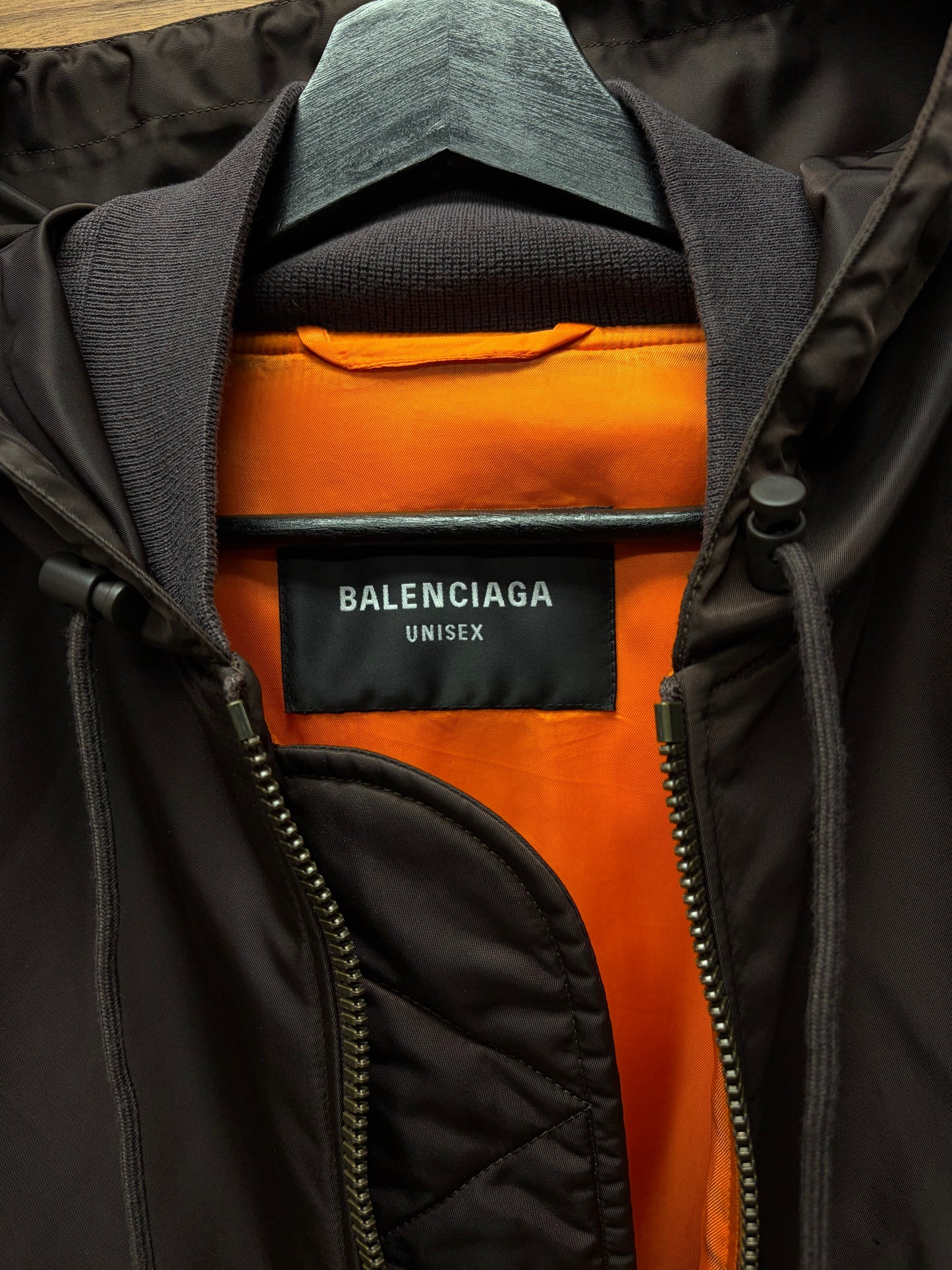 For sale is a SS2022 Balenciaga ‘3B Sport Icon’ Brown Hooded Bomber Jacket
