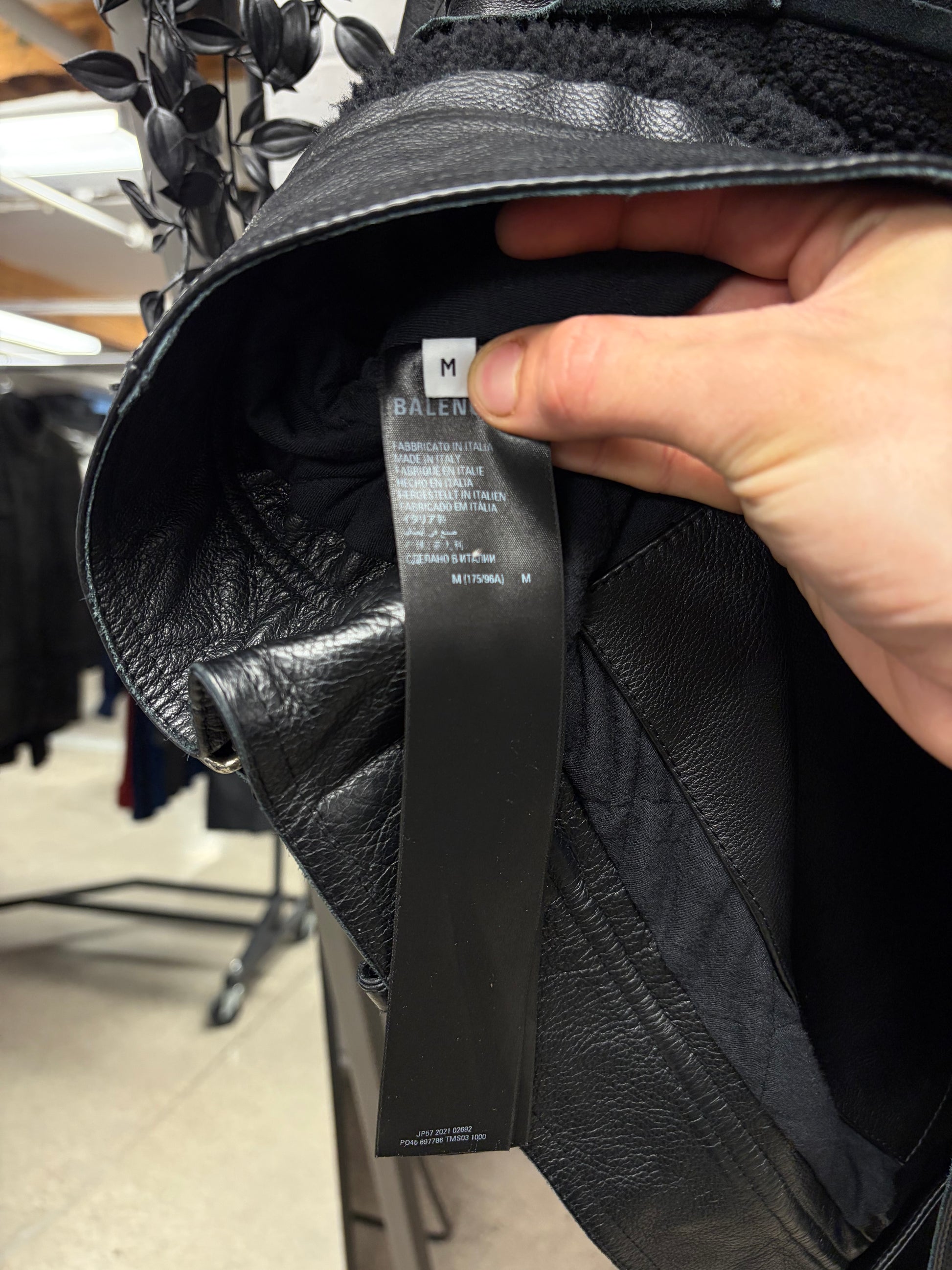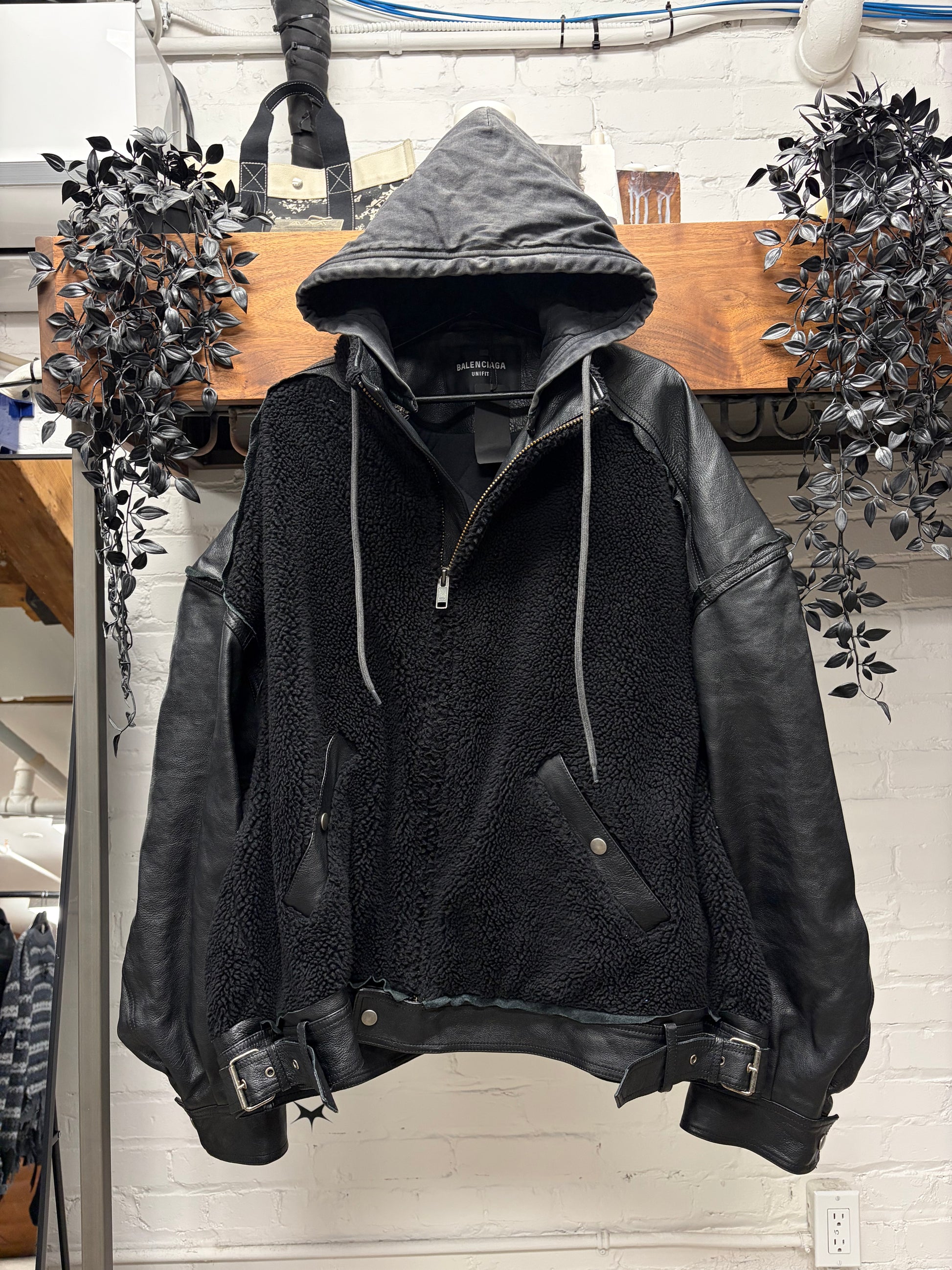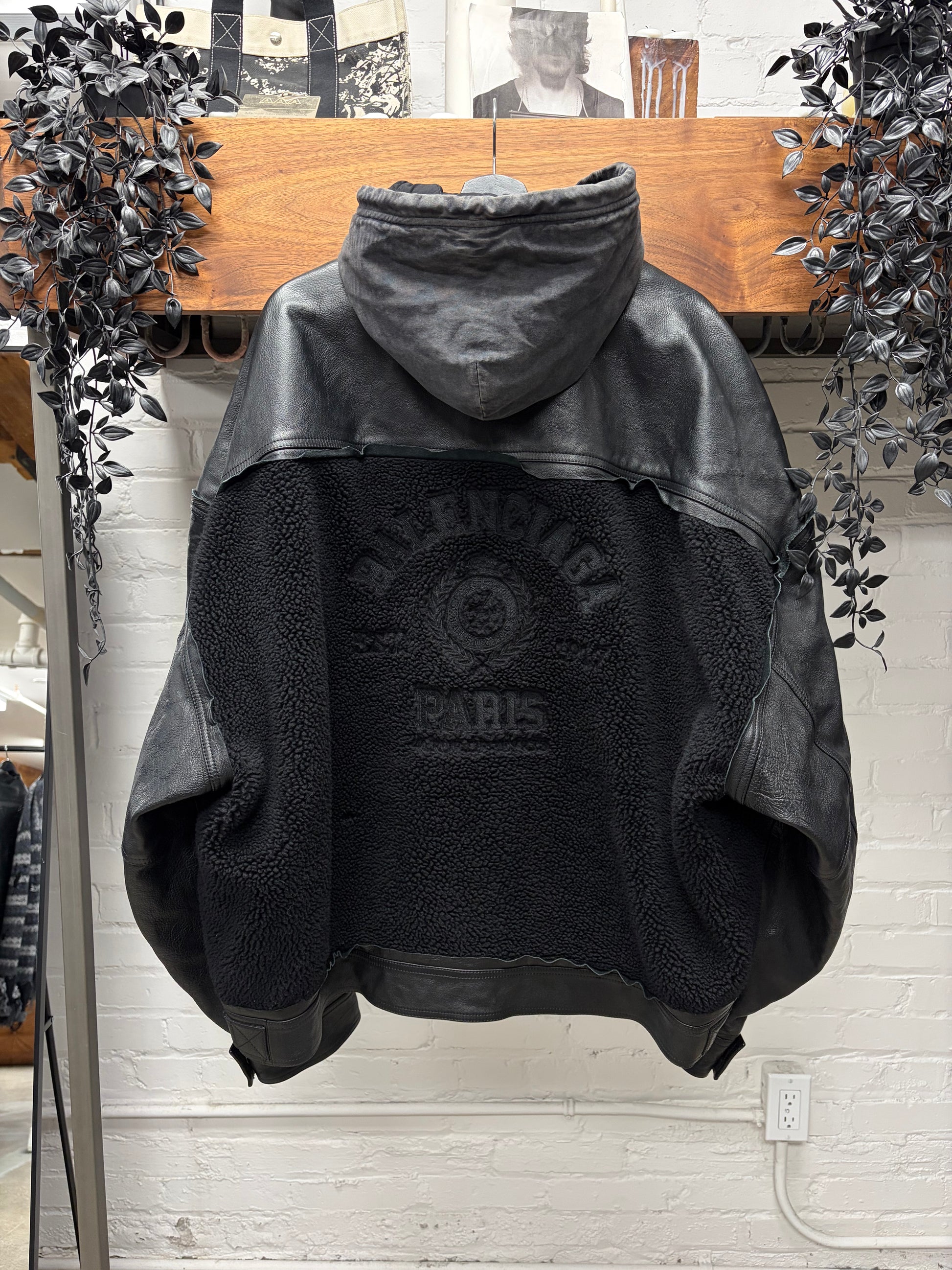 (FOR SALE) A 2021 Balenciaga ‘Collegiate’ Shearling/Raw Hem Lambskin Leather Hooded Jacket