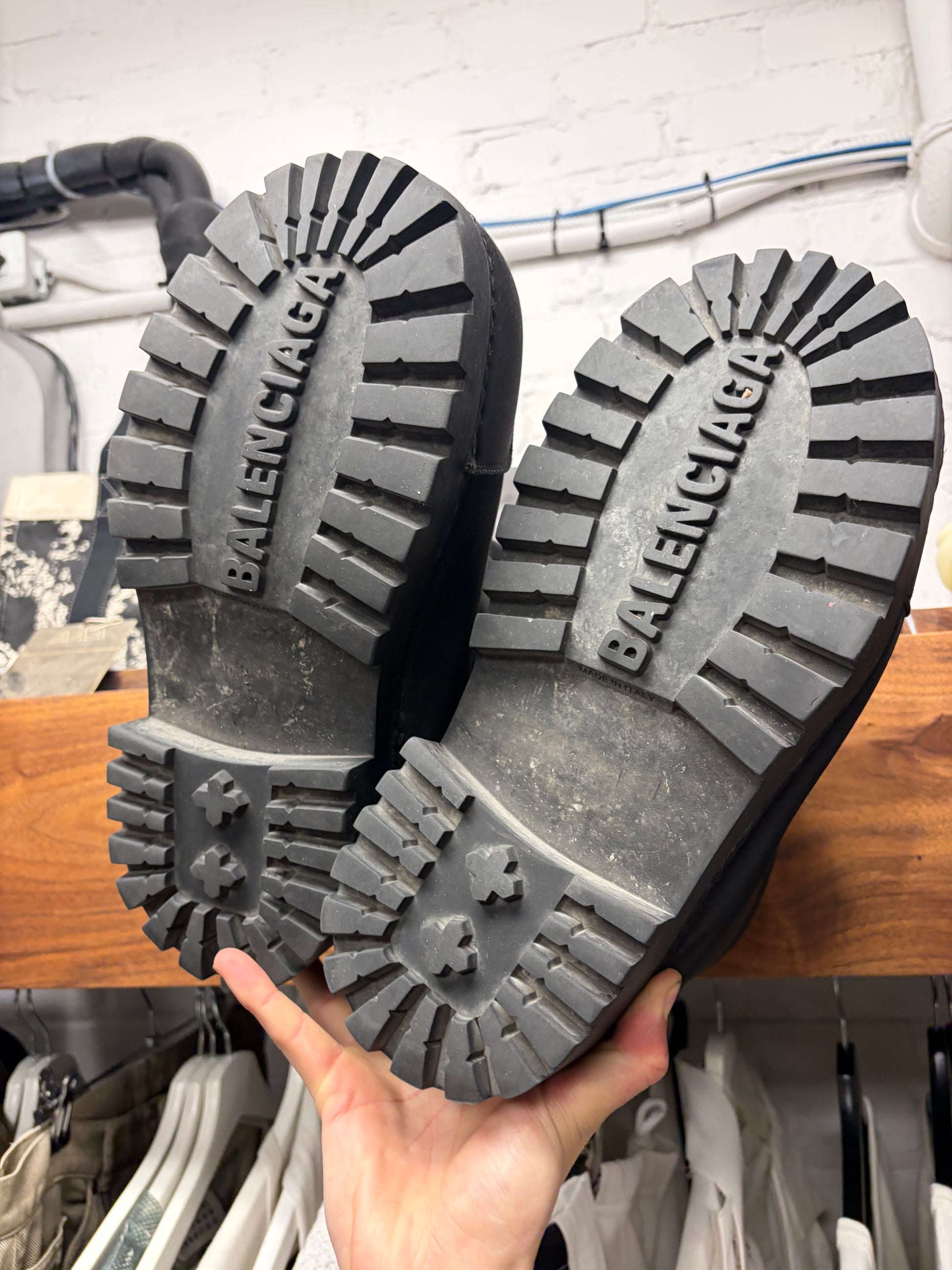 For sale is a pair of Balenciaga ‘Alaska’ Black Oversized Low Top Boots