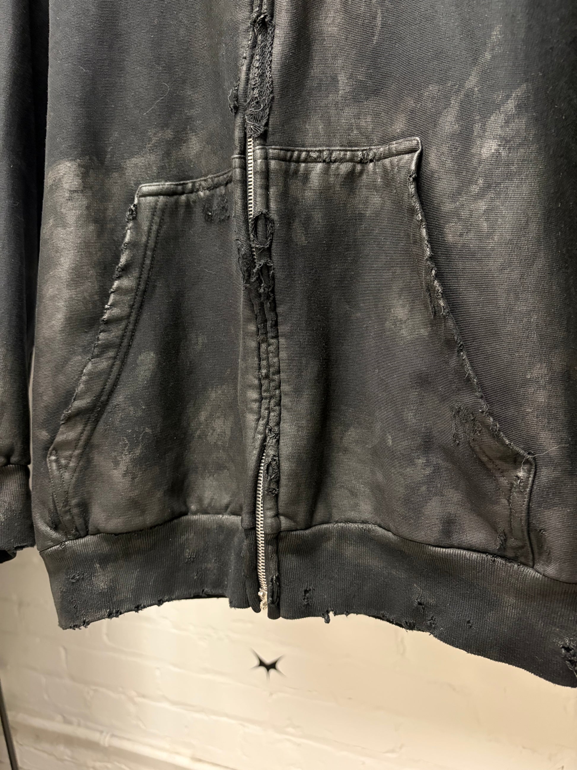 AW2023 Balenciaga Mudshow ‘Gaffer Tape’ Black Distressed Zip-Up Hoodie
