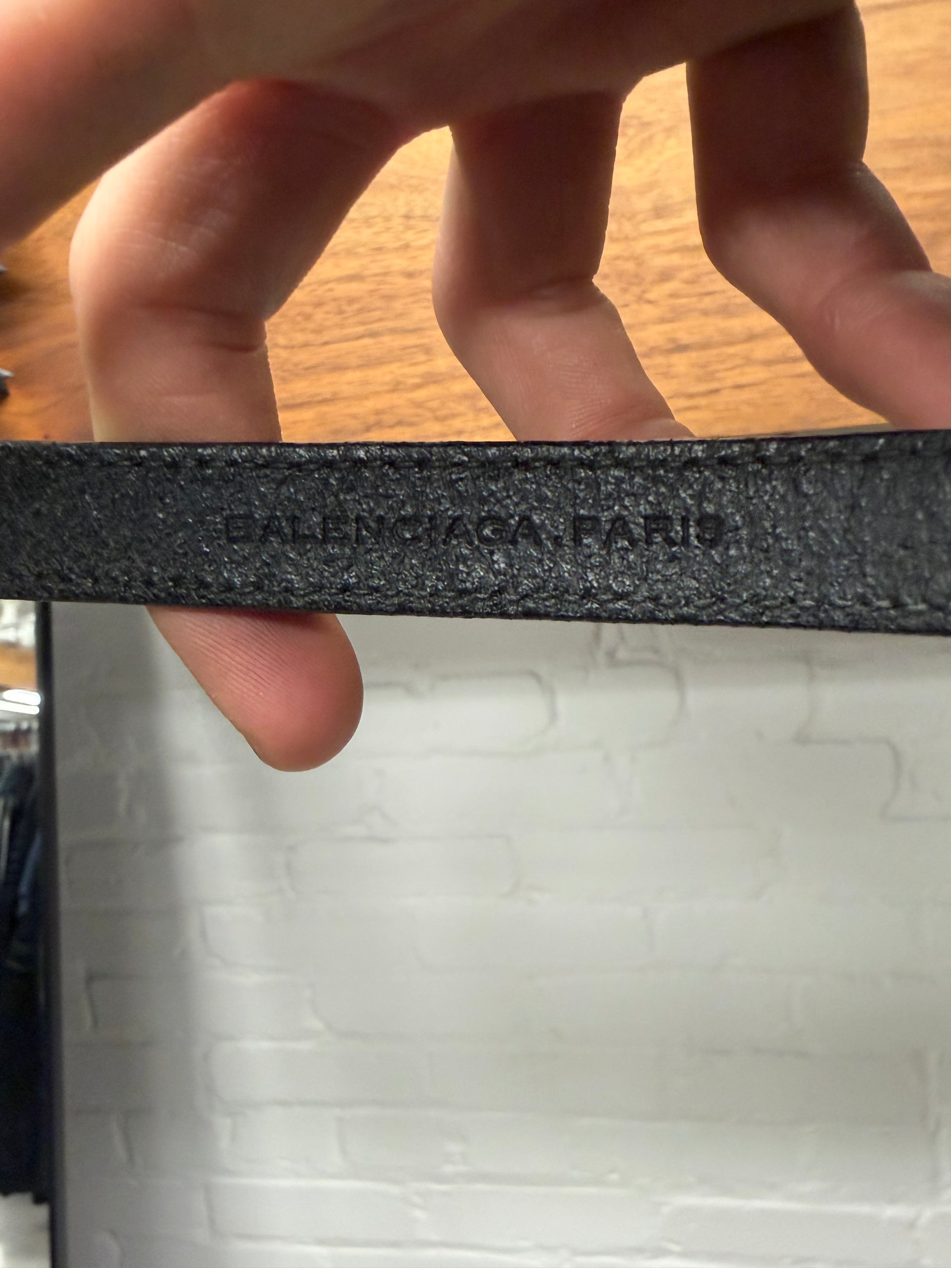 For sale is a Balenciaga ‘Agneau’ Single Strap Black Calfskin Leather Bracelet