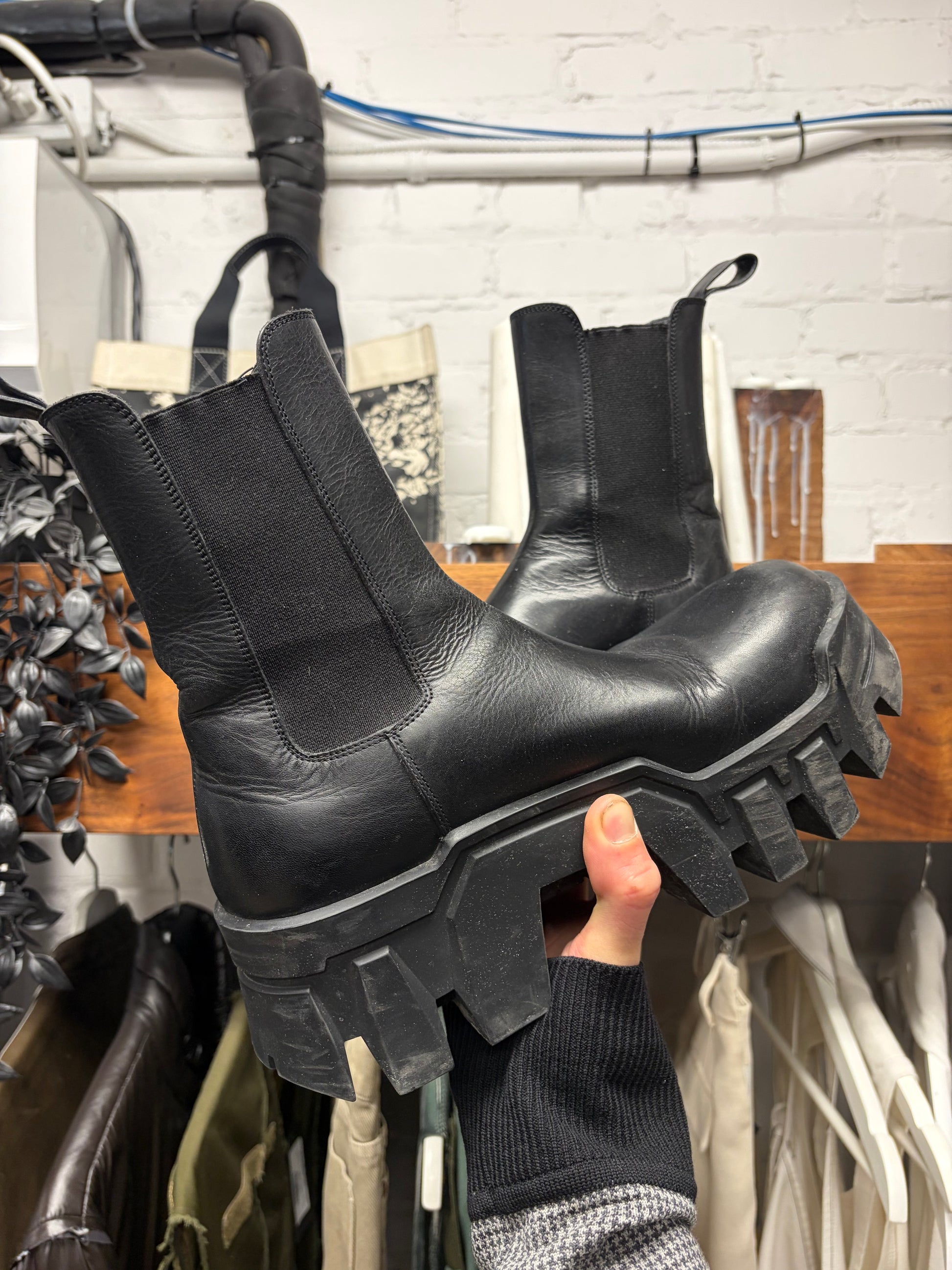 Balenciaga ‘Bulldozer’ Black Platform Sole Leather Combat Boots