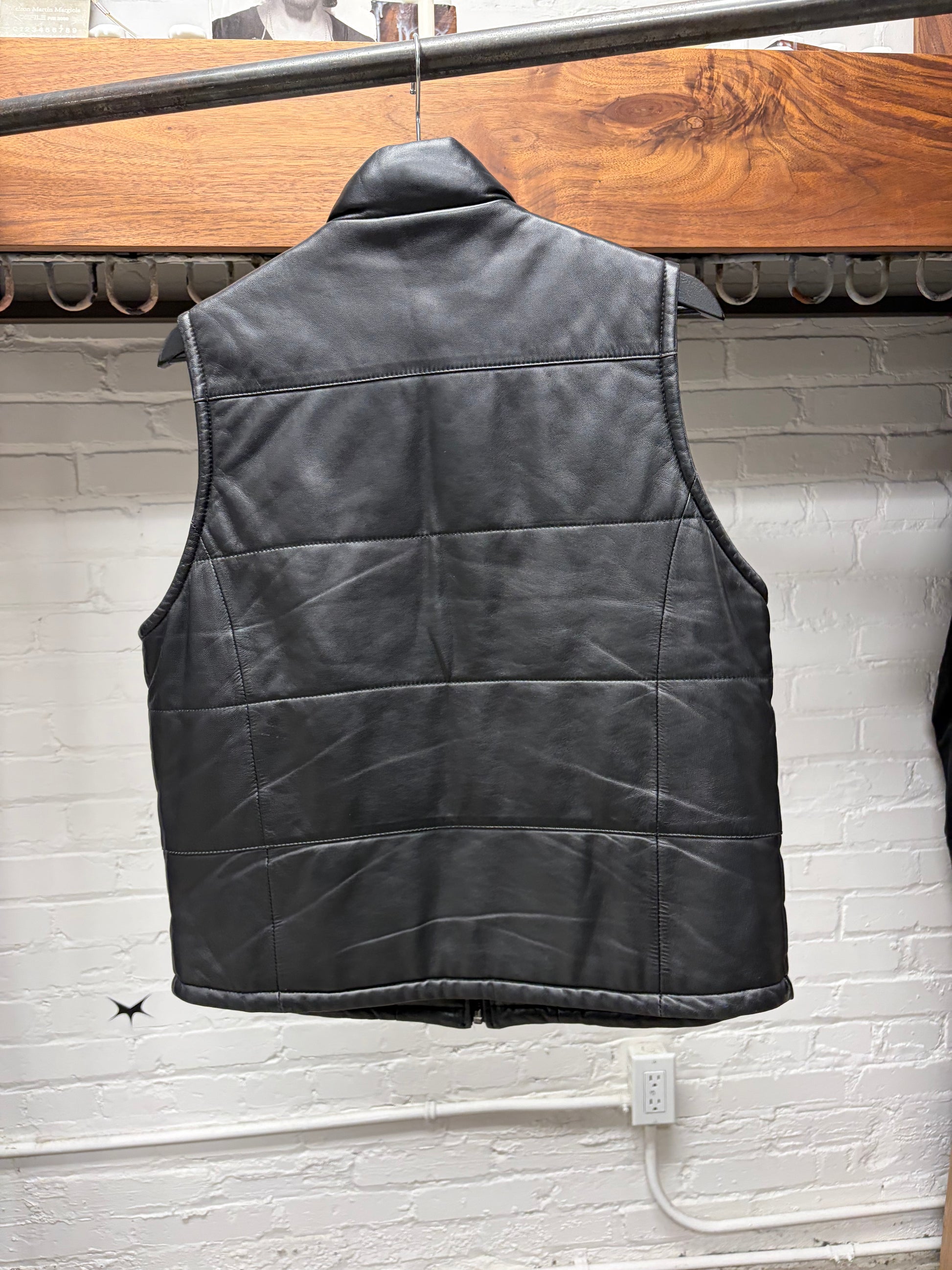 Vintage Balmain Lambskin Leather Padded Black Vest