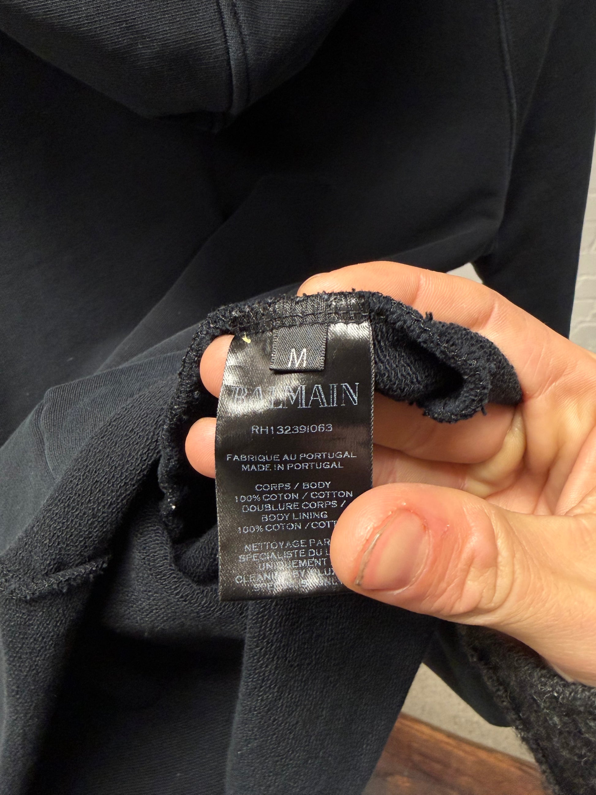 For sale is a Balmain Black/Blue Logo Black Cotton Pullover Hoodie