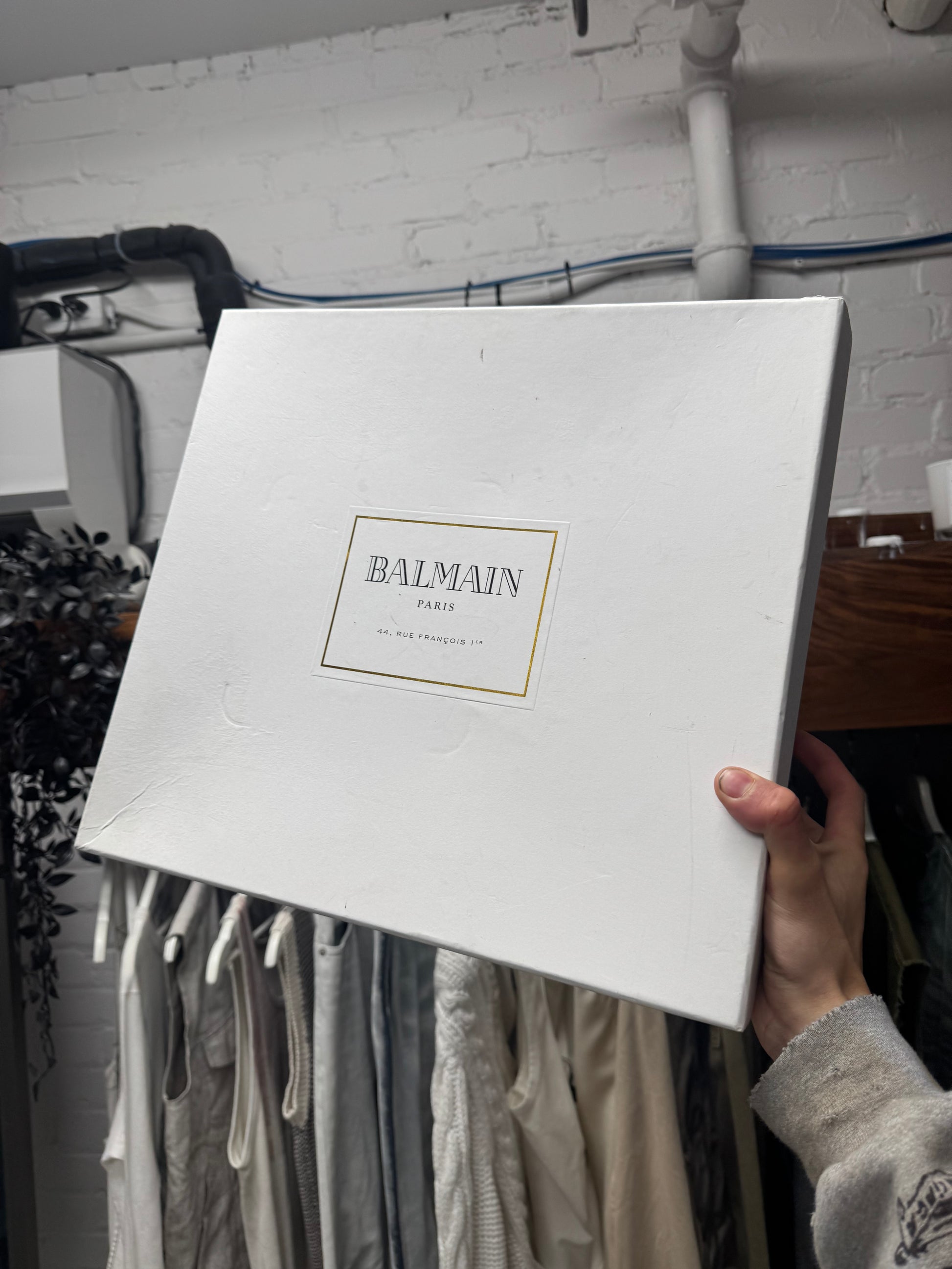 -Balmain’s ‘Anthos’ pointed toe boots with a wood platform sole, holding up a sleek brown suede upper and rounded point toe shape.