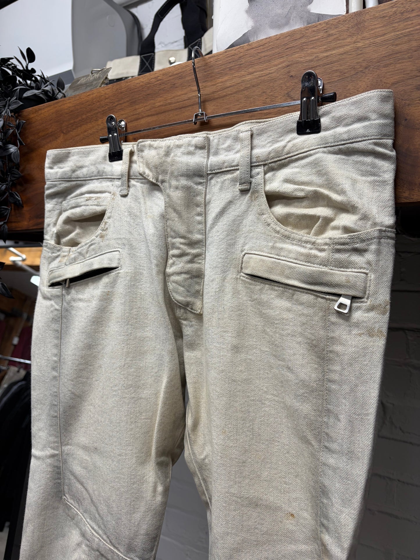 For sale is a pair of Balmain ‘Dirty White’ Biker Knee Skinny Jeans