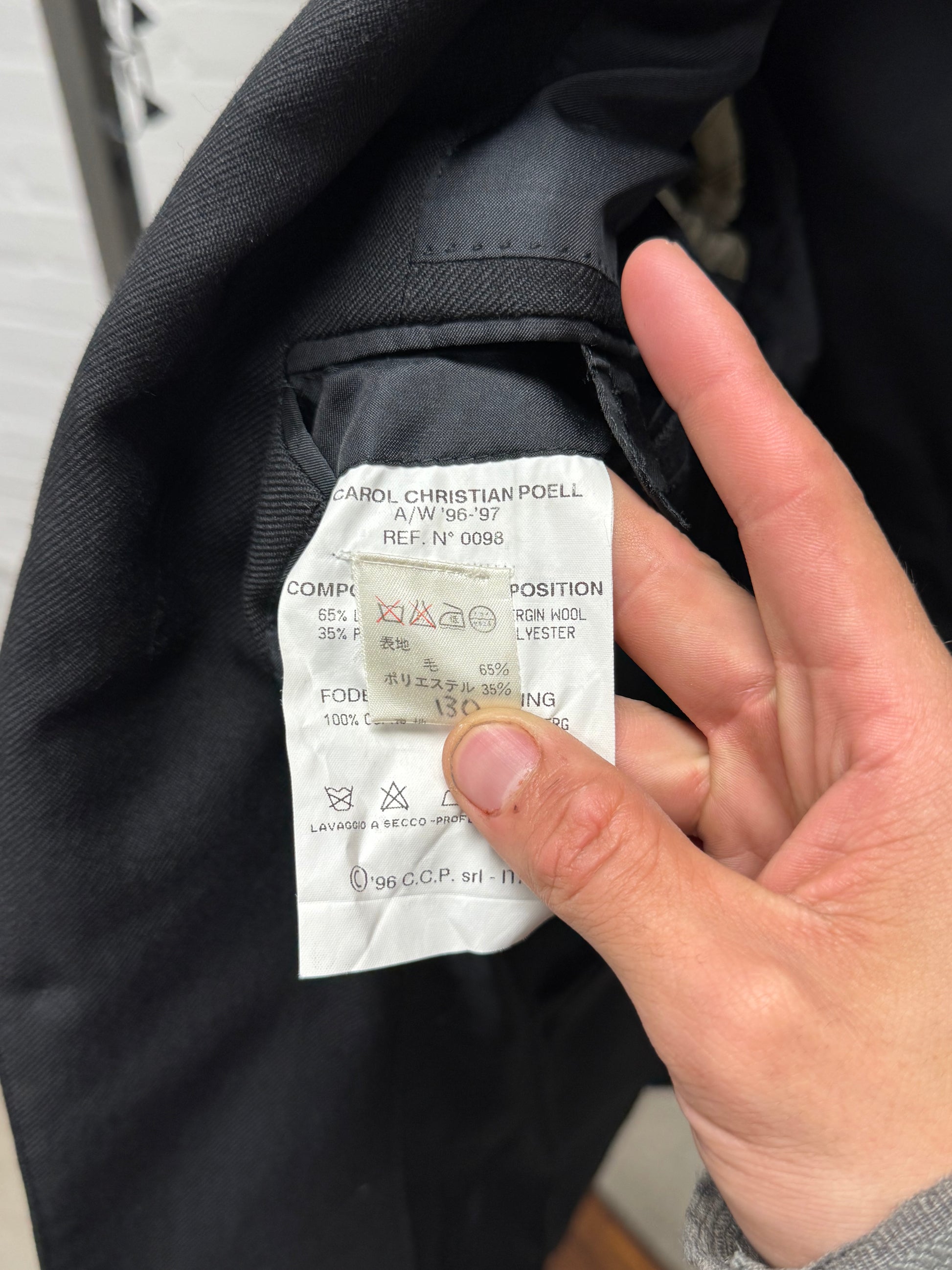 AW1996 Carol Christian Poell ‘0098’ Black ‘Tuxedo Slit’ Wool Blazer