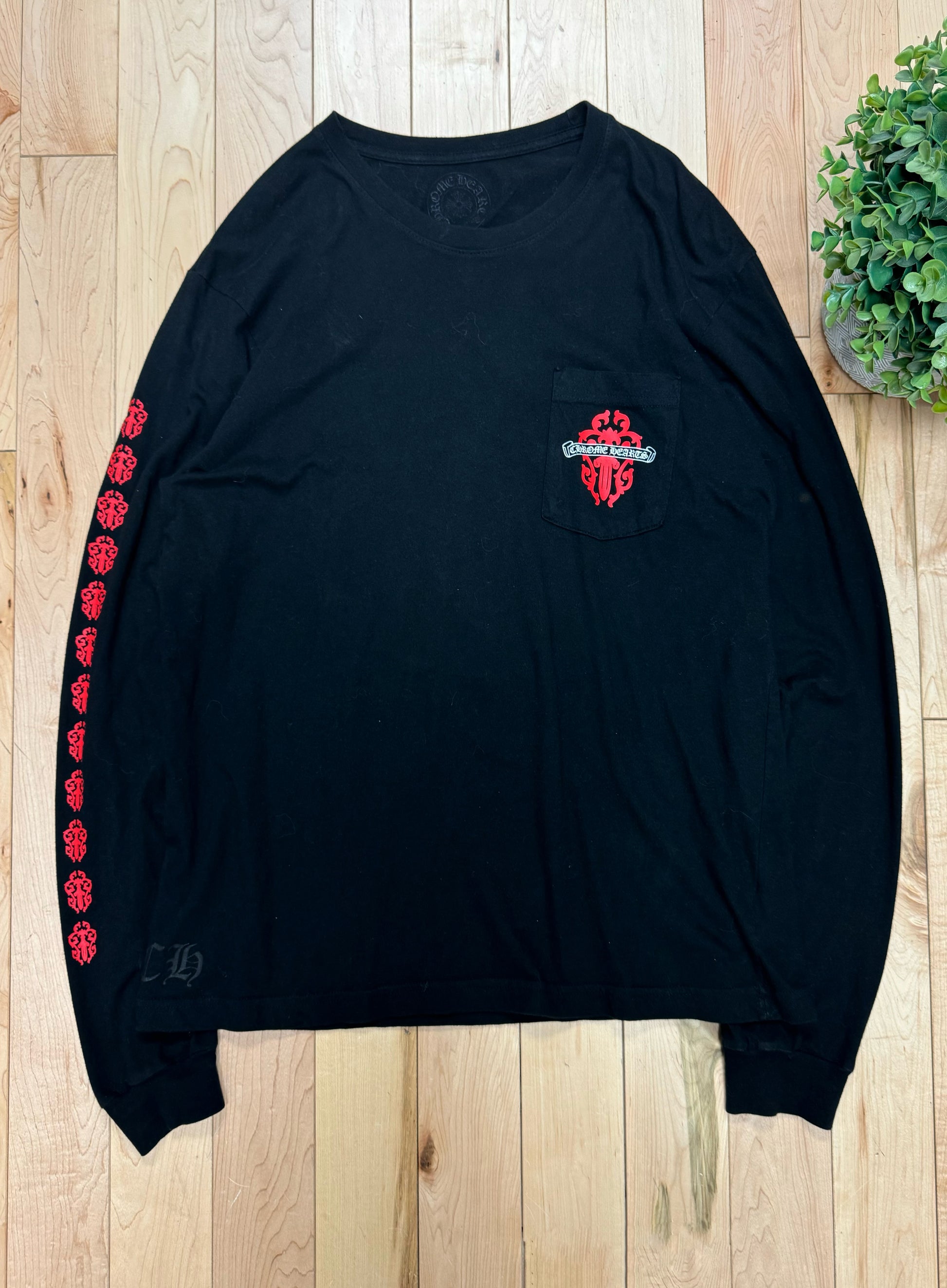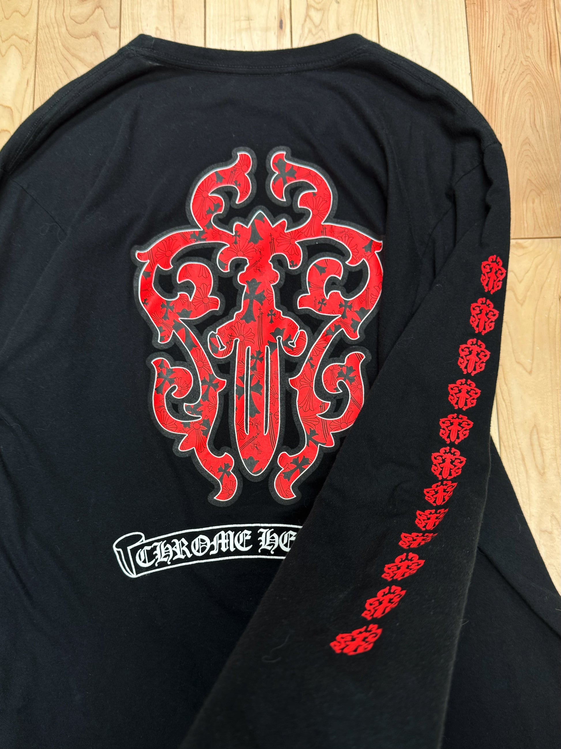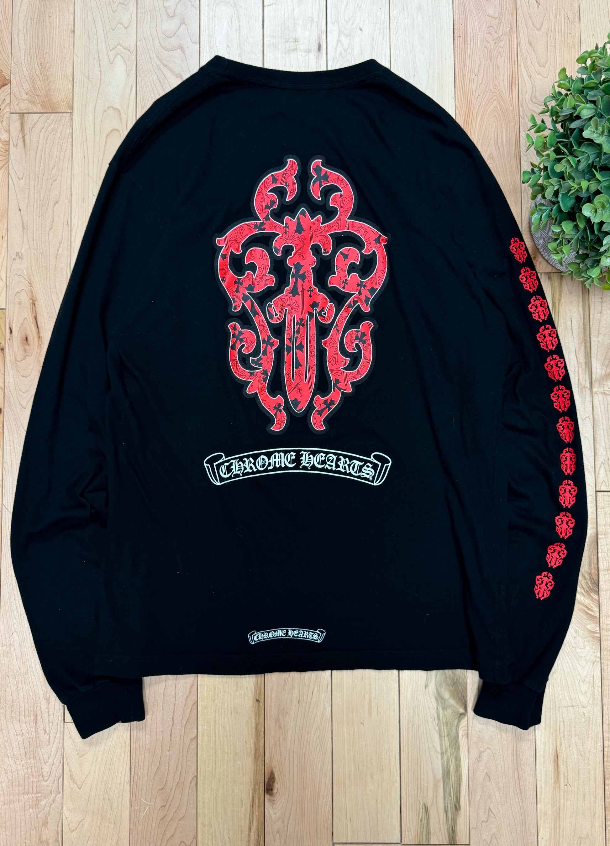 (FOR SALE) A Chrome Hearts ‘Dagger’ Logo Black/Red Long Sleeve Shirt.