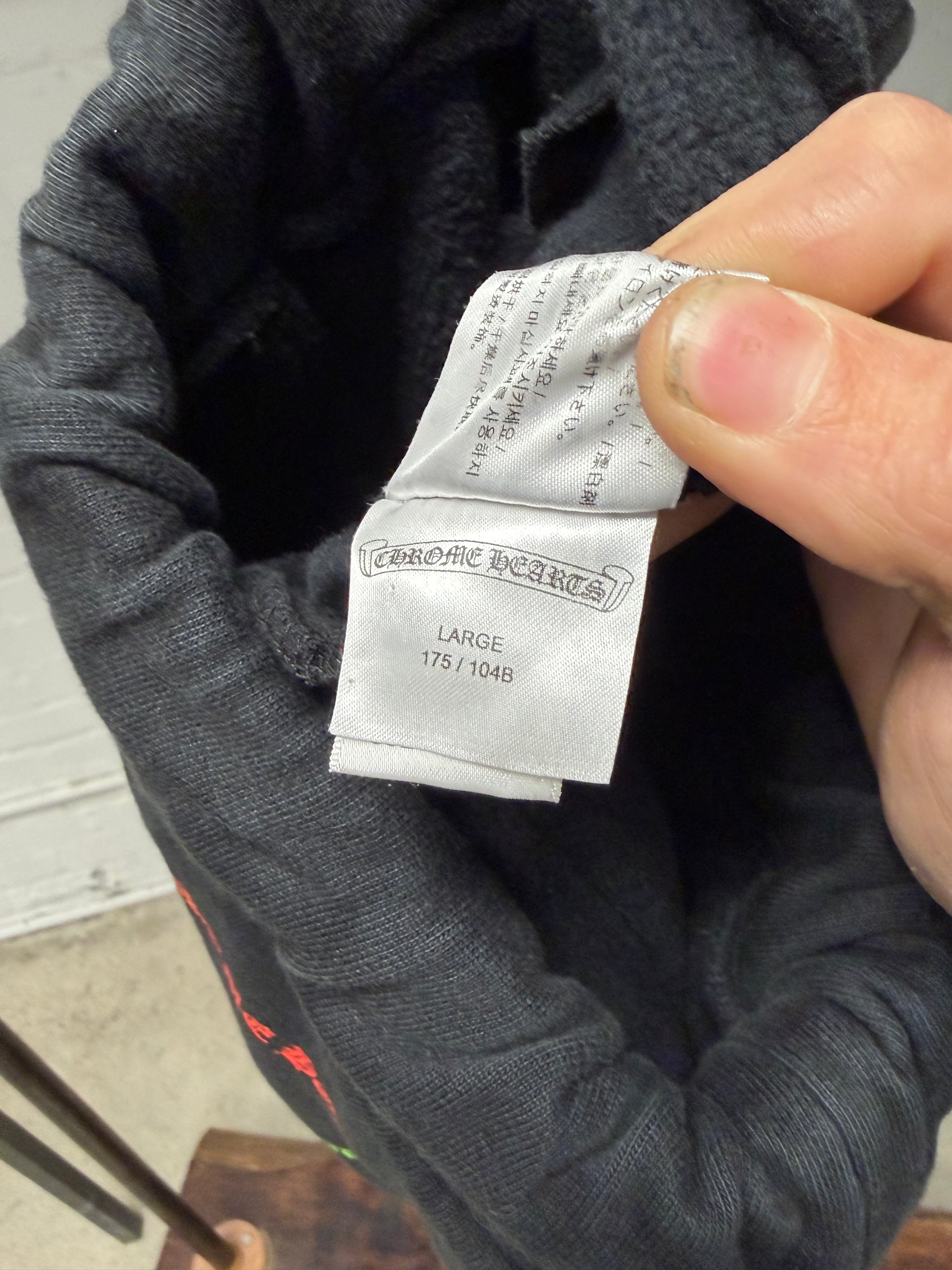 For sale is a Chrome Hearts ‘Floral Cross’ Gradient Logo Black Drawstring Sweatpants