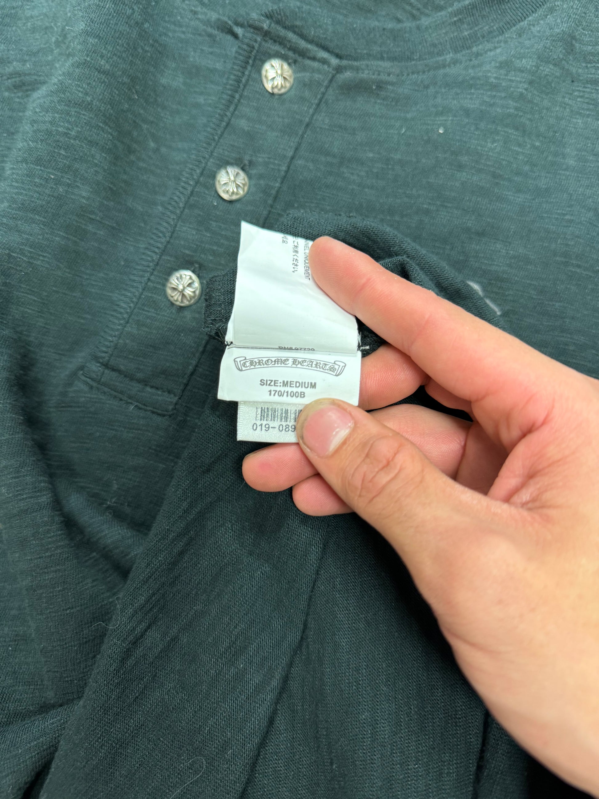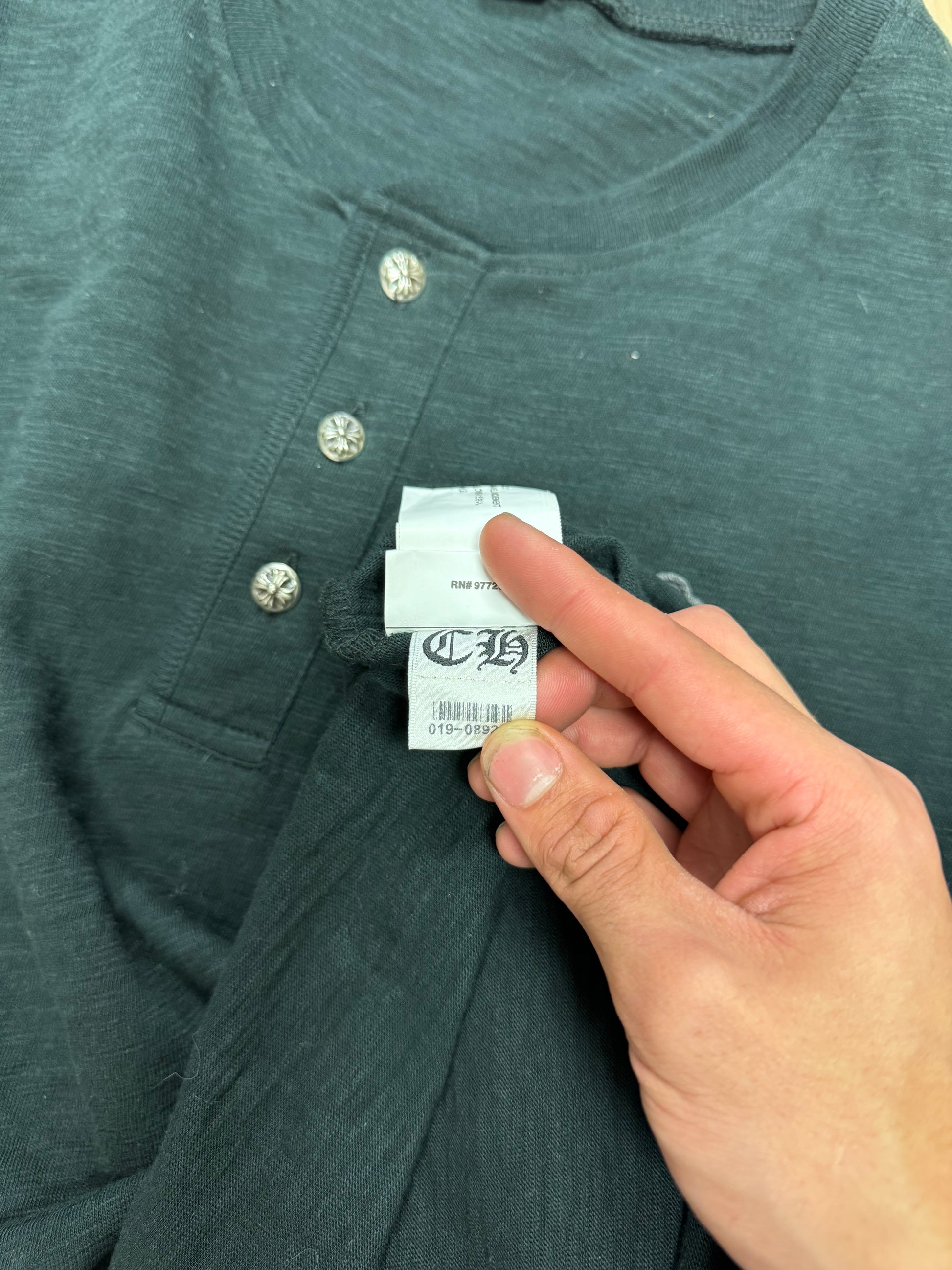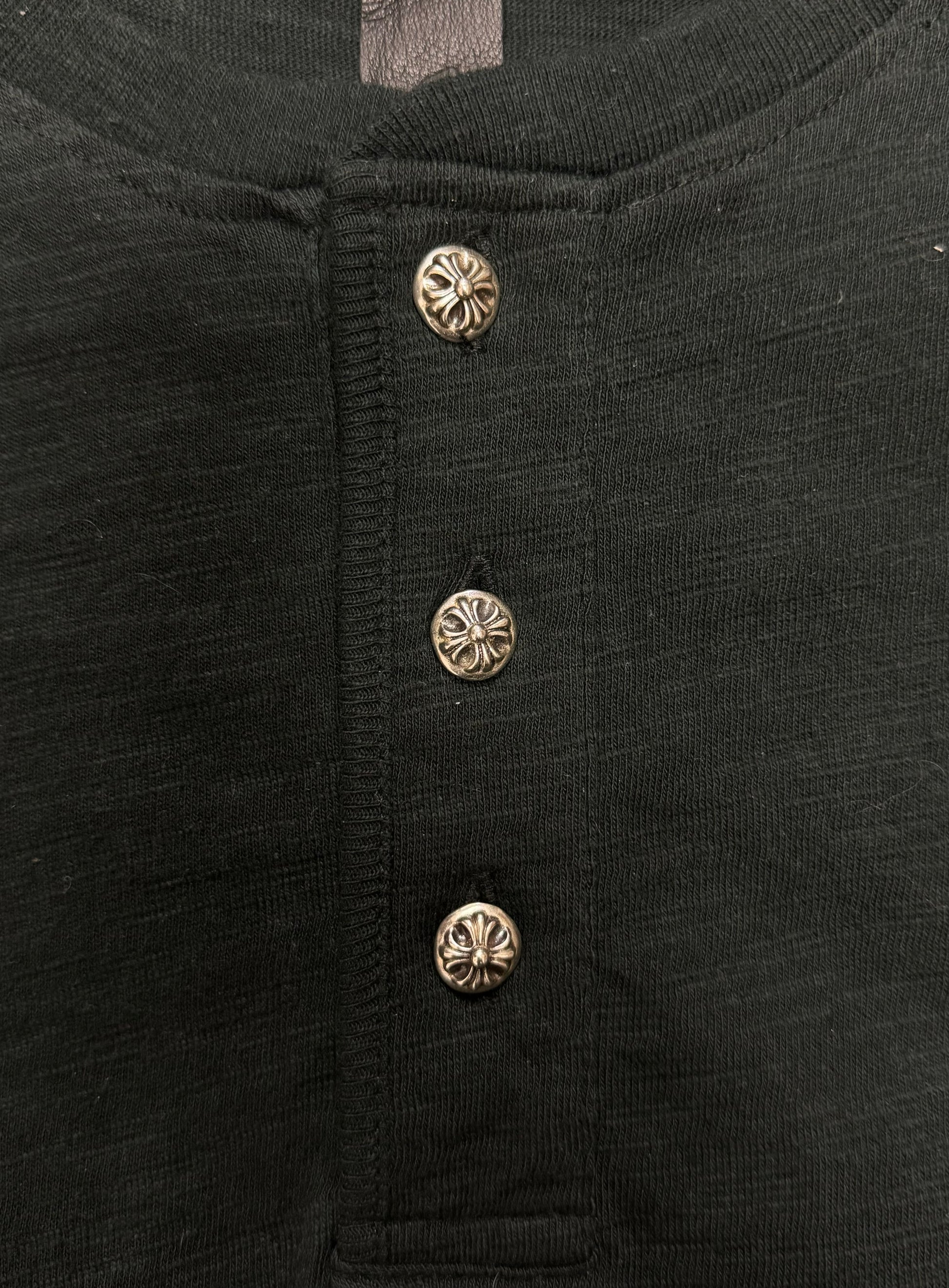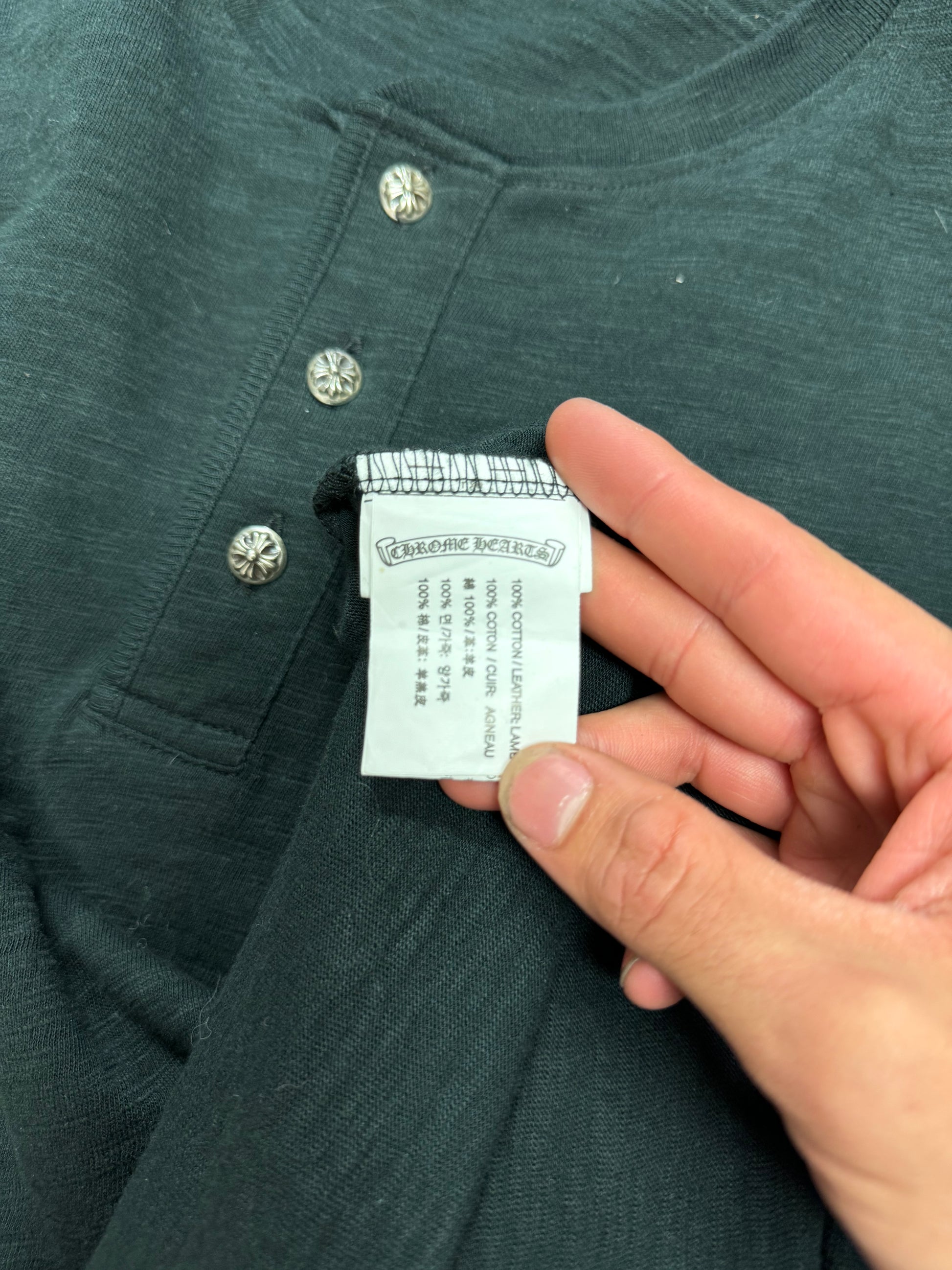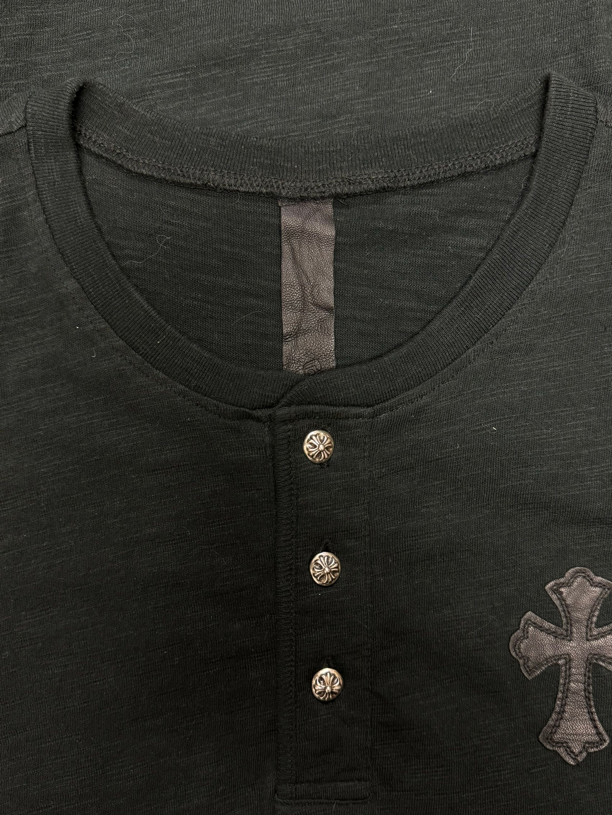 (FOR SALE) A Chrome Hearts Leather Cross Patch Henley Shirt.