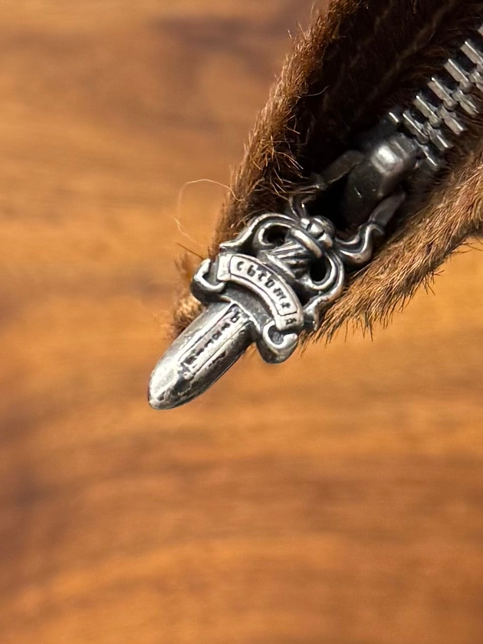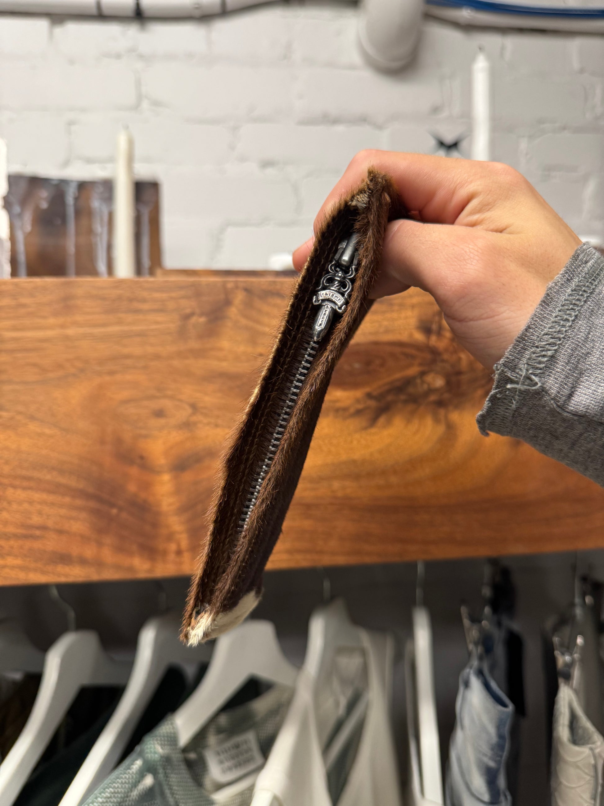 For sale is a Chrome Hearts Pony-Hair Cowhide ‘Chng Purse’ Dagger Zip Pouch