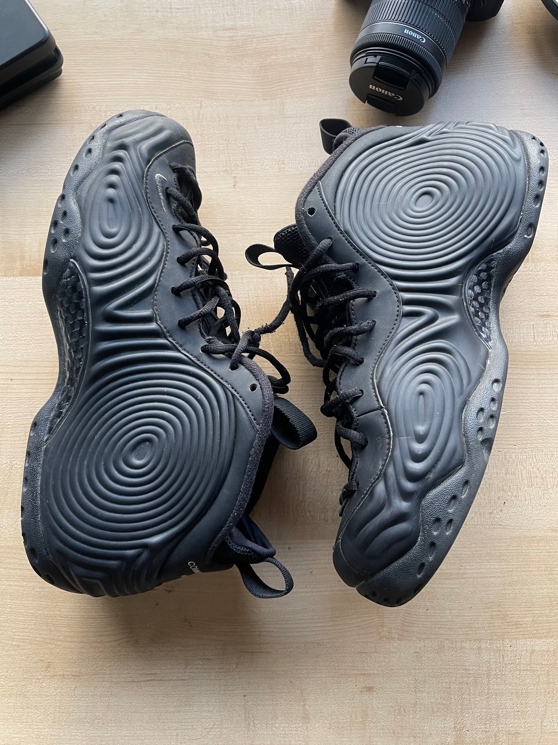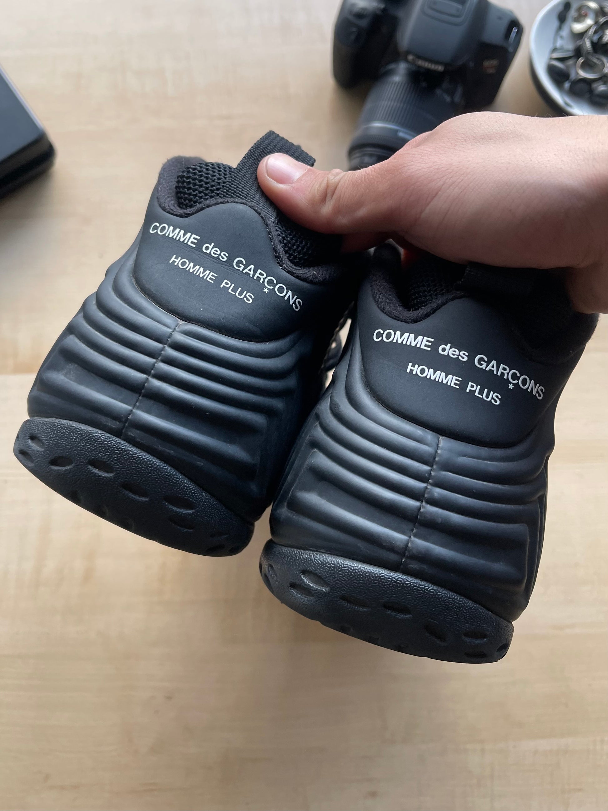 Comme Des Garcons x Nike Foamposites in the staple black colorway. Size US 11 (EU 44) and in great shape with minimal wear.