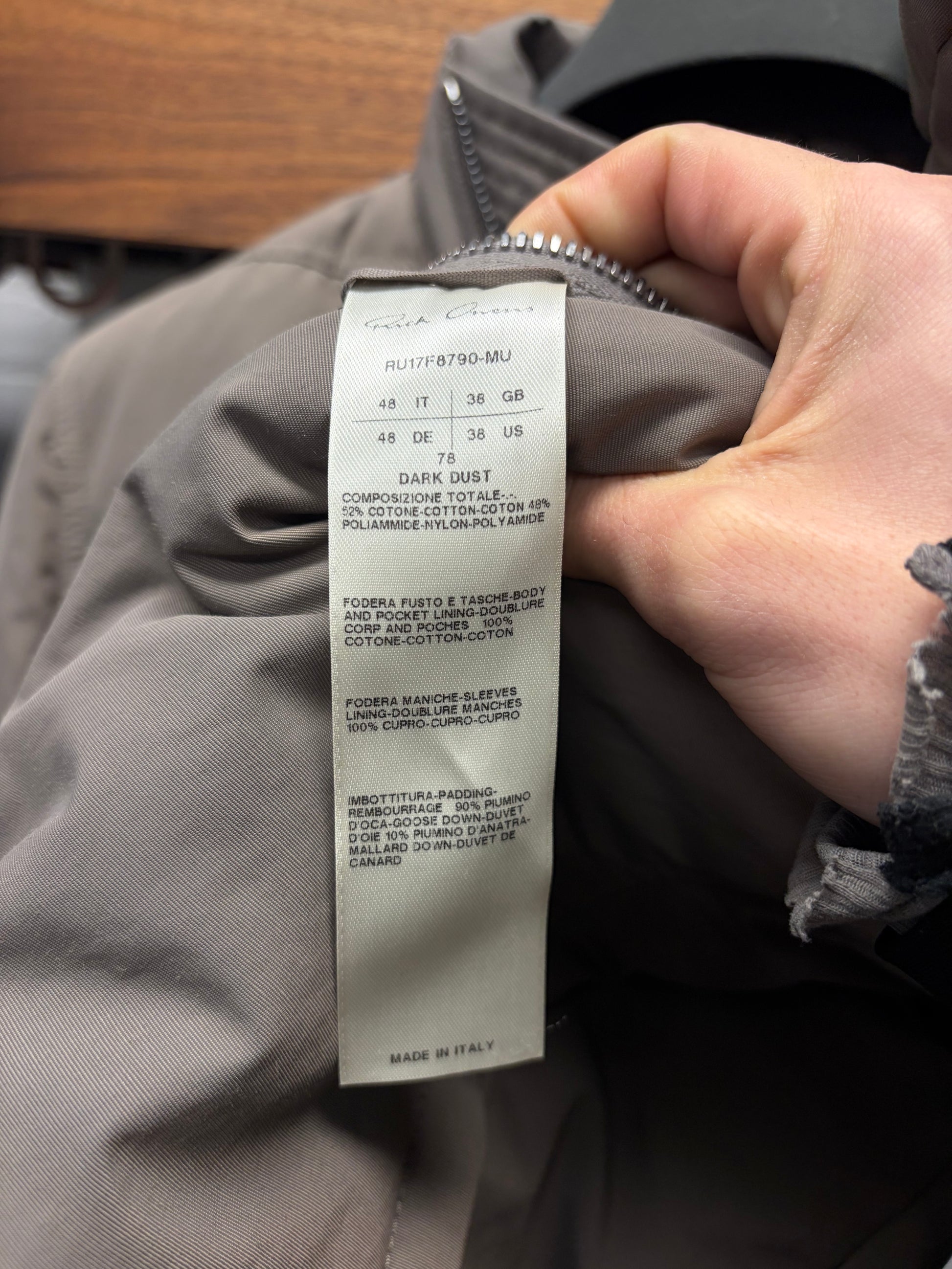 (FOR SALE) An AW2017 Rick Owens ‘Glitter’ Mollino Zip Dust Brown Puffer Jacket