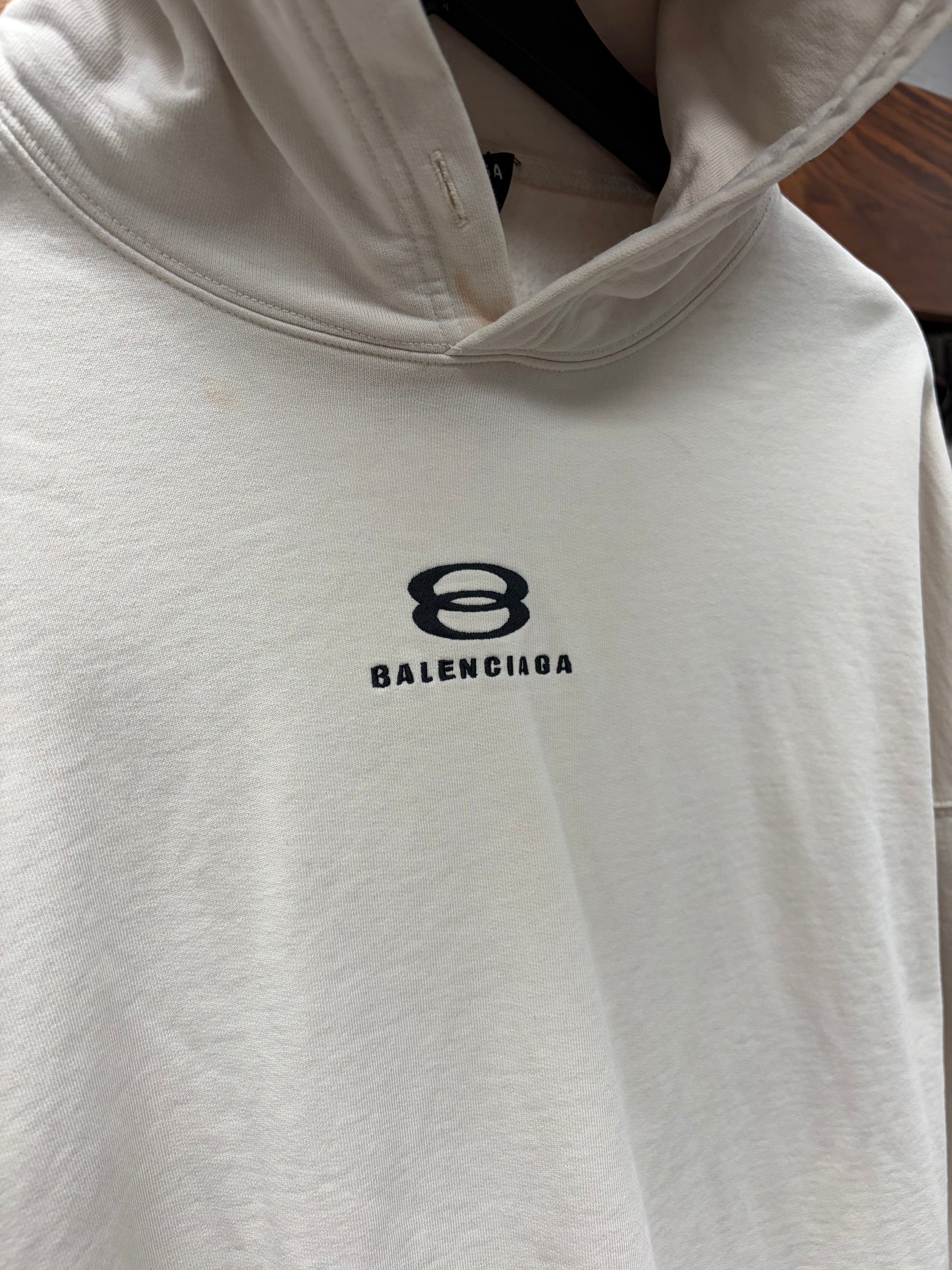 For sale is a SS2022 Balenciaga ‘Unity Logo’ Cream White Pullover Hoodie