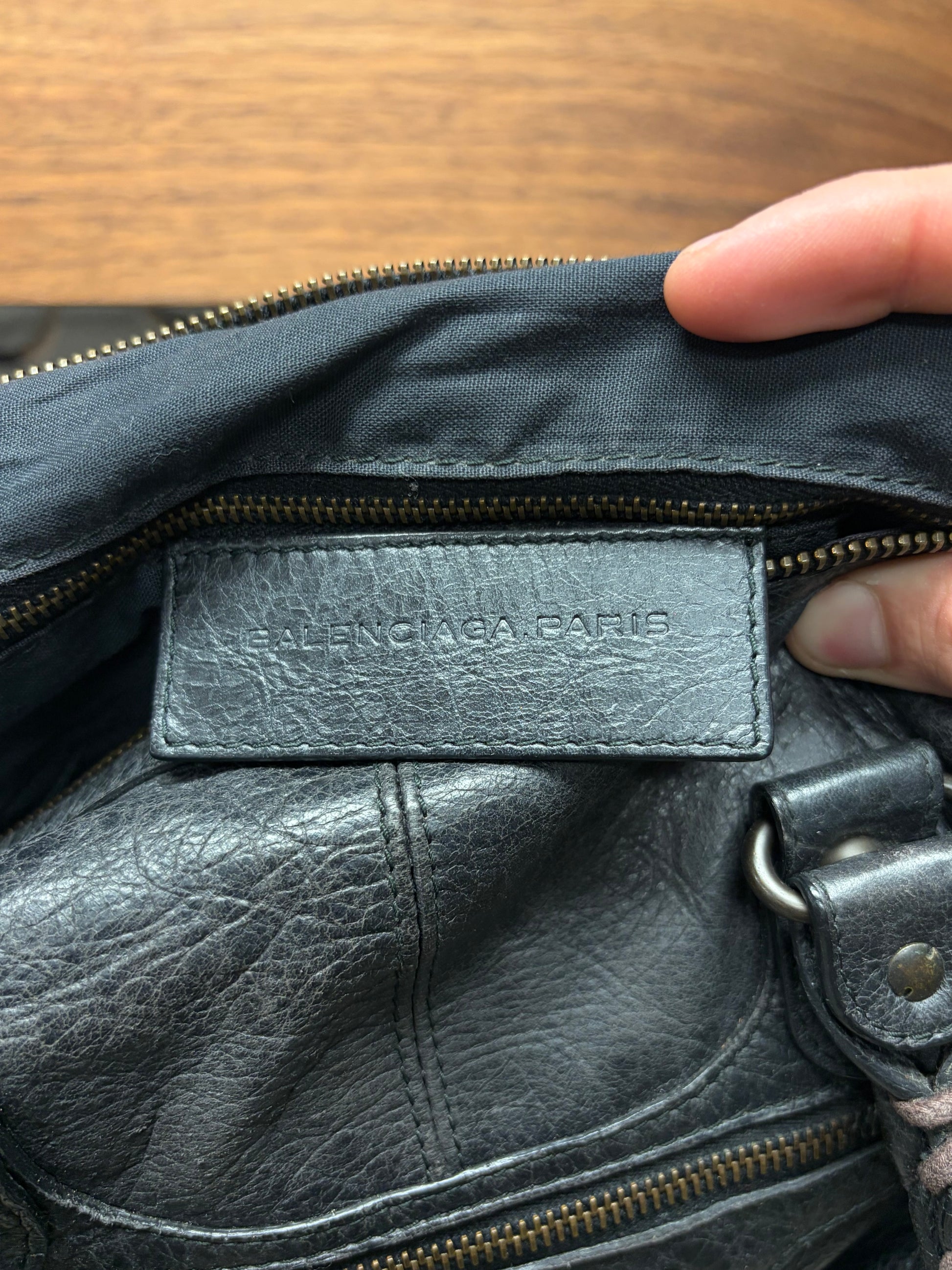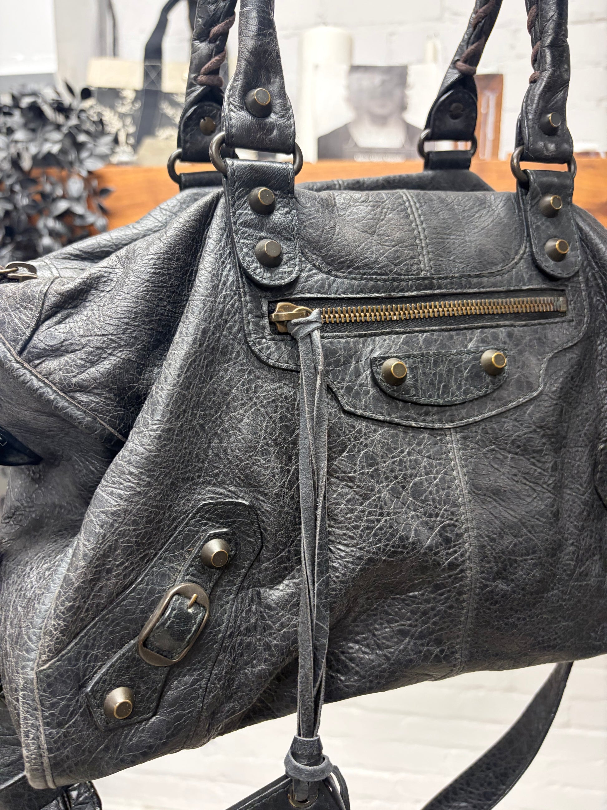 Balenciaga Classic Aged Black/Silver Hardware ‘City Bag’ with Crossbody Strap
