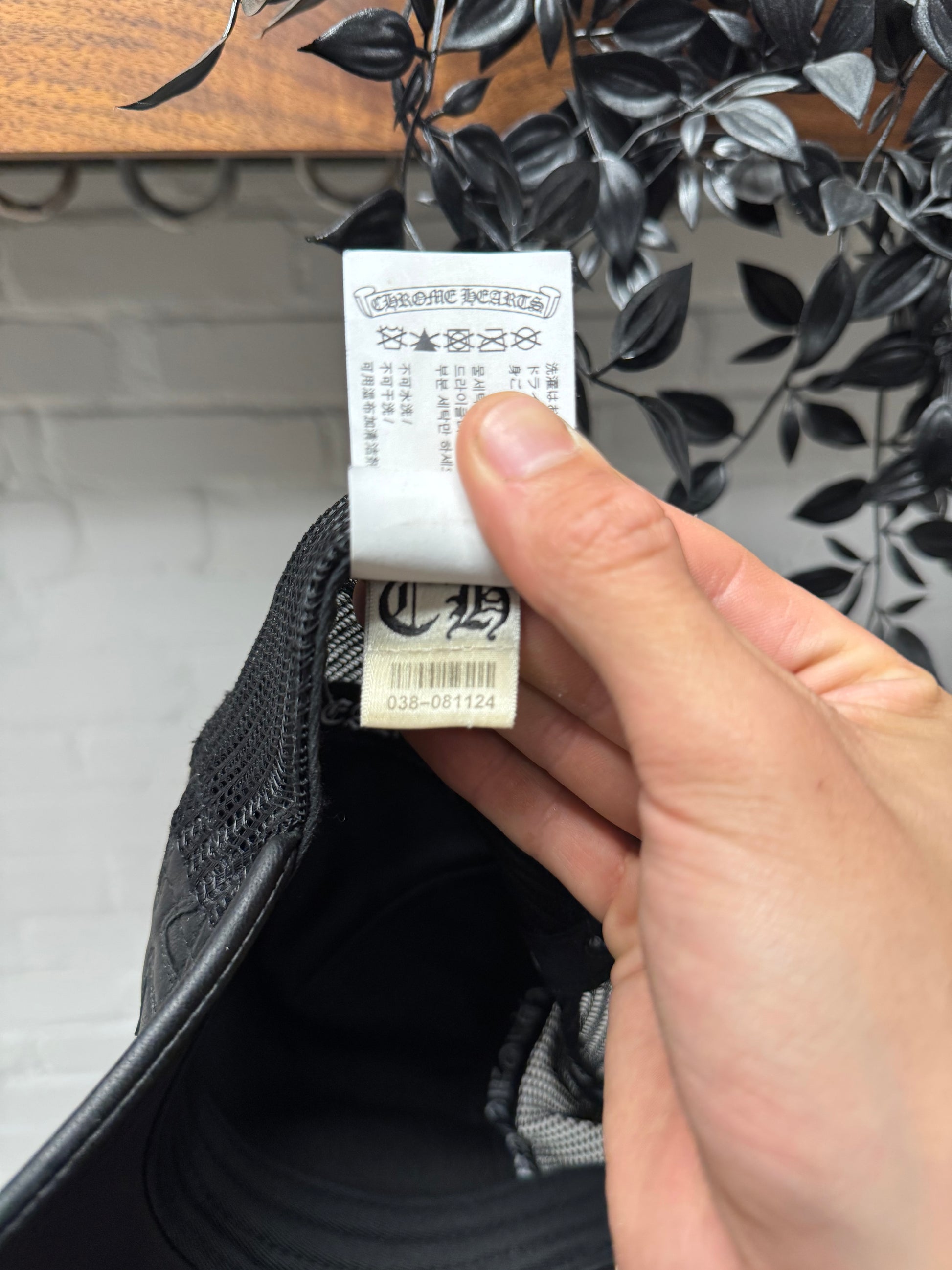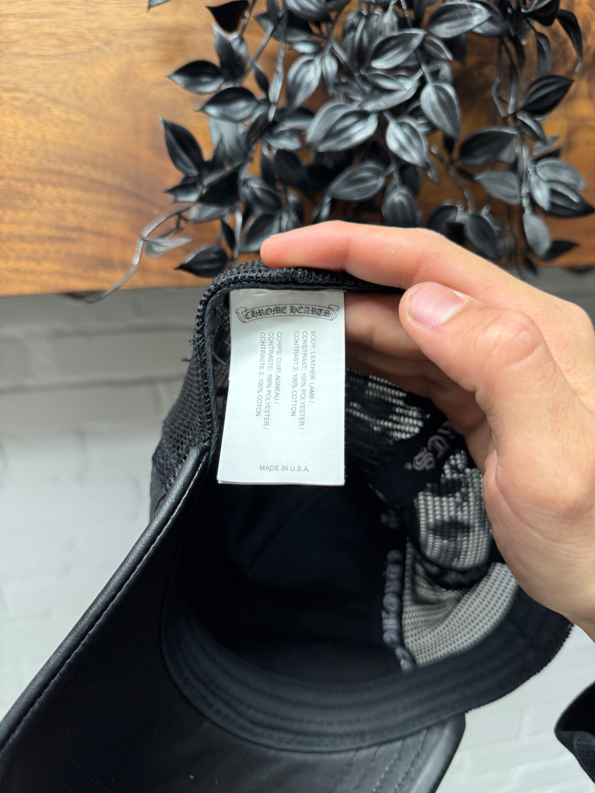 (FOR SALE) A Chrome Hearts ‘Cemetery’ Leather Cross Patch Trucker Hat.