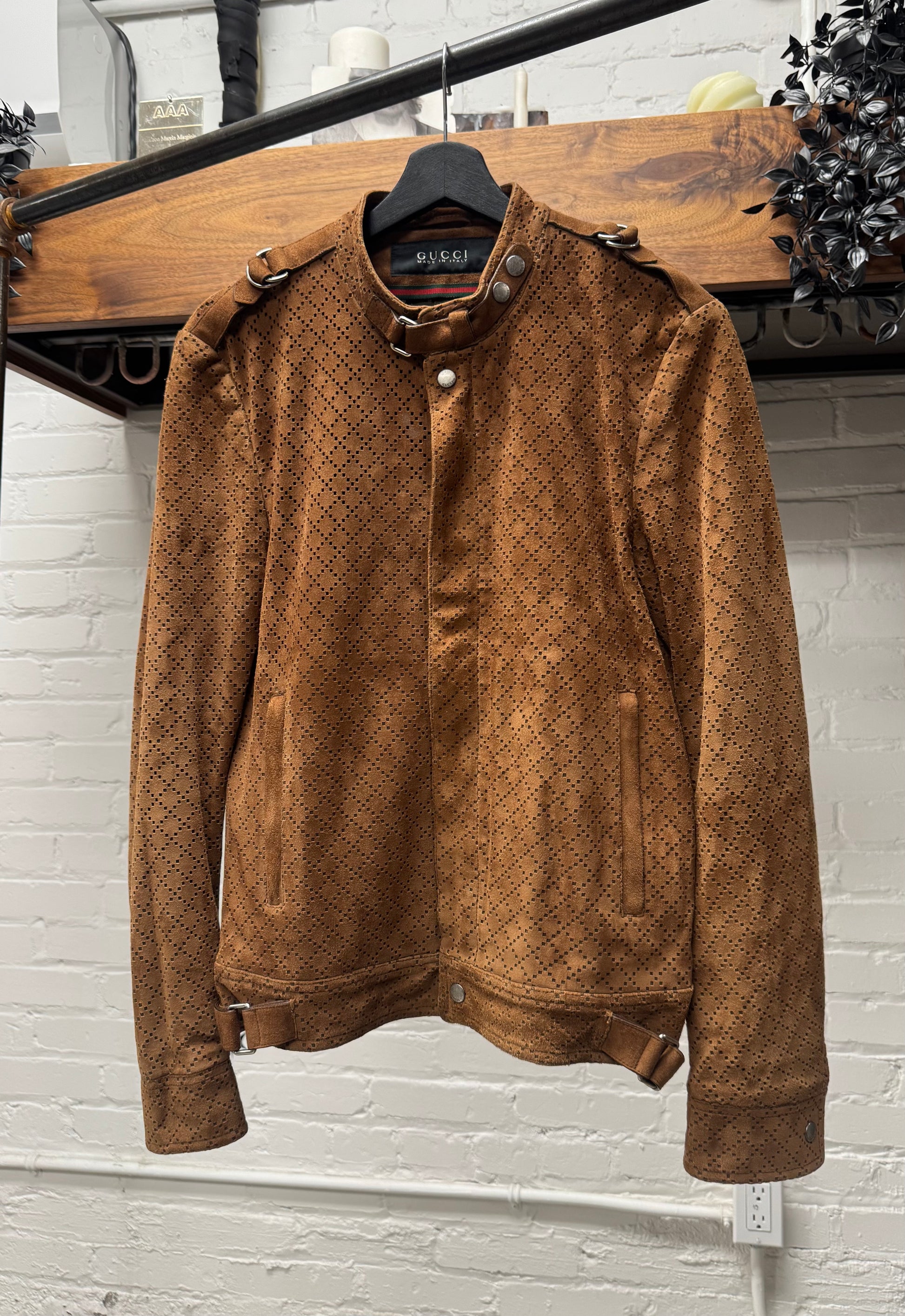 (FOR SALE) A Gucci by Tom Ford ‘Diamante’ Perforated Brown Suede Biker Jacket