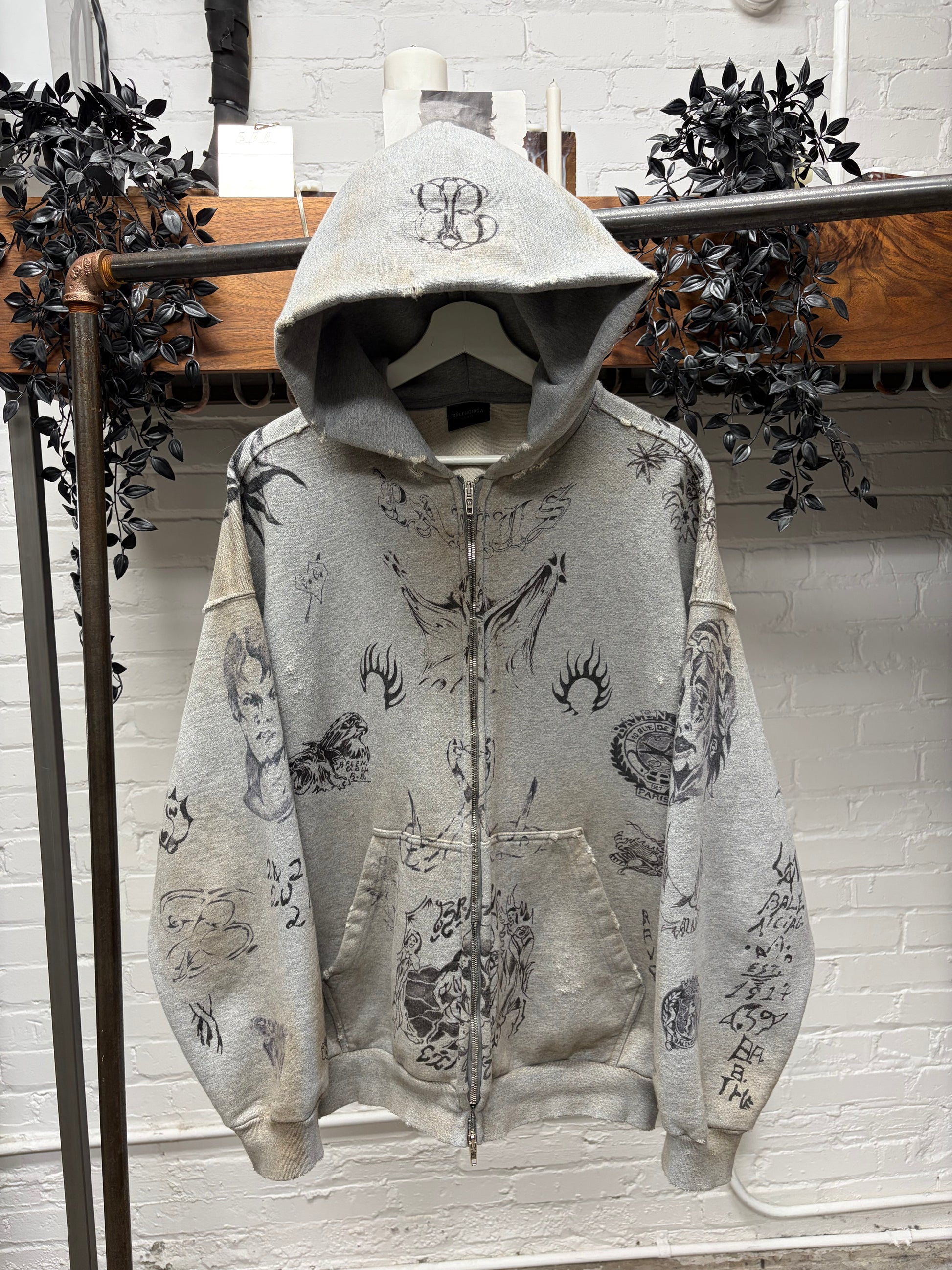 (FOR SALE) a SS2024 Balenciaga ‘Tattoo’ Grey Zip Up Hoodie