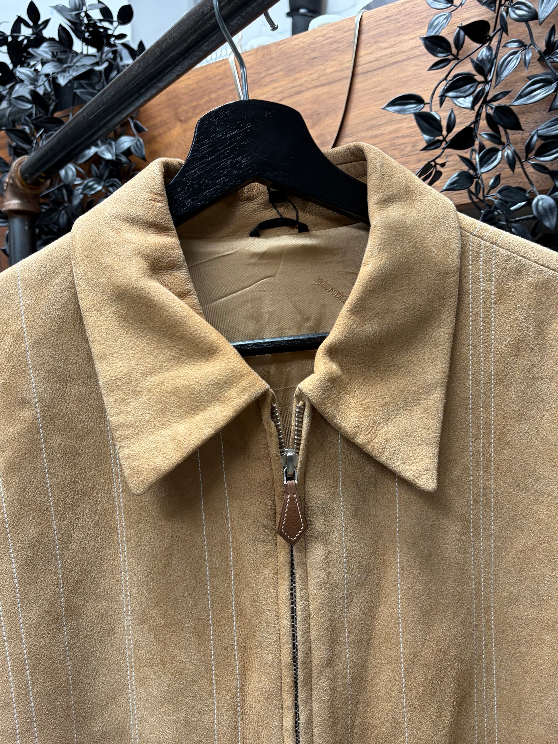 For sale is a Vintage Hermes Striped Suede Jacket With Silk Liner