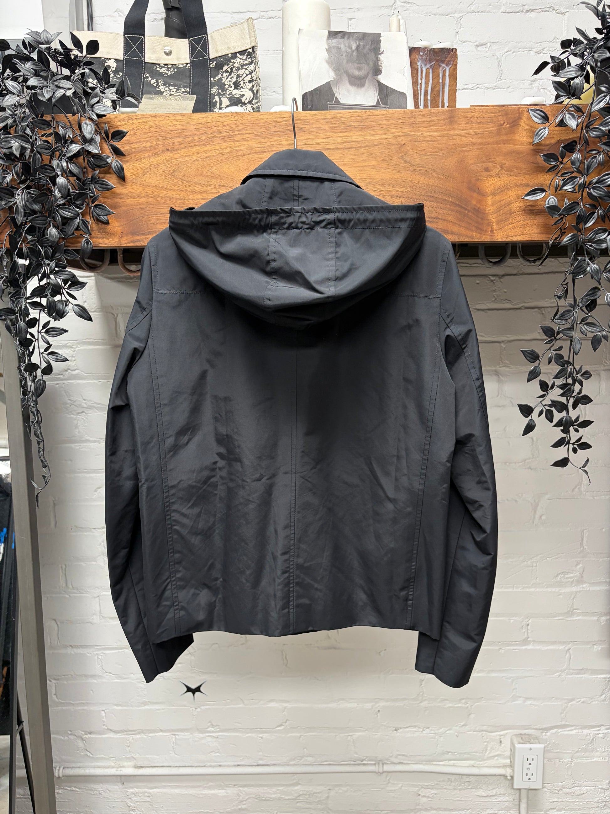 For sale is a Dior Homme Black Nylon Military Jacket with Compartmentalized Stow Hood