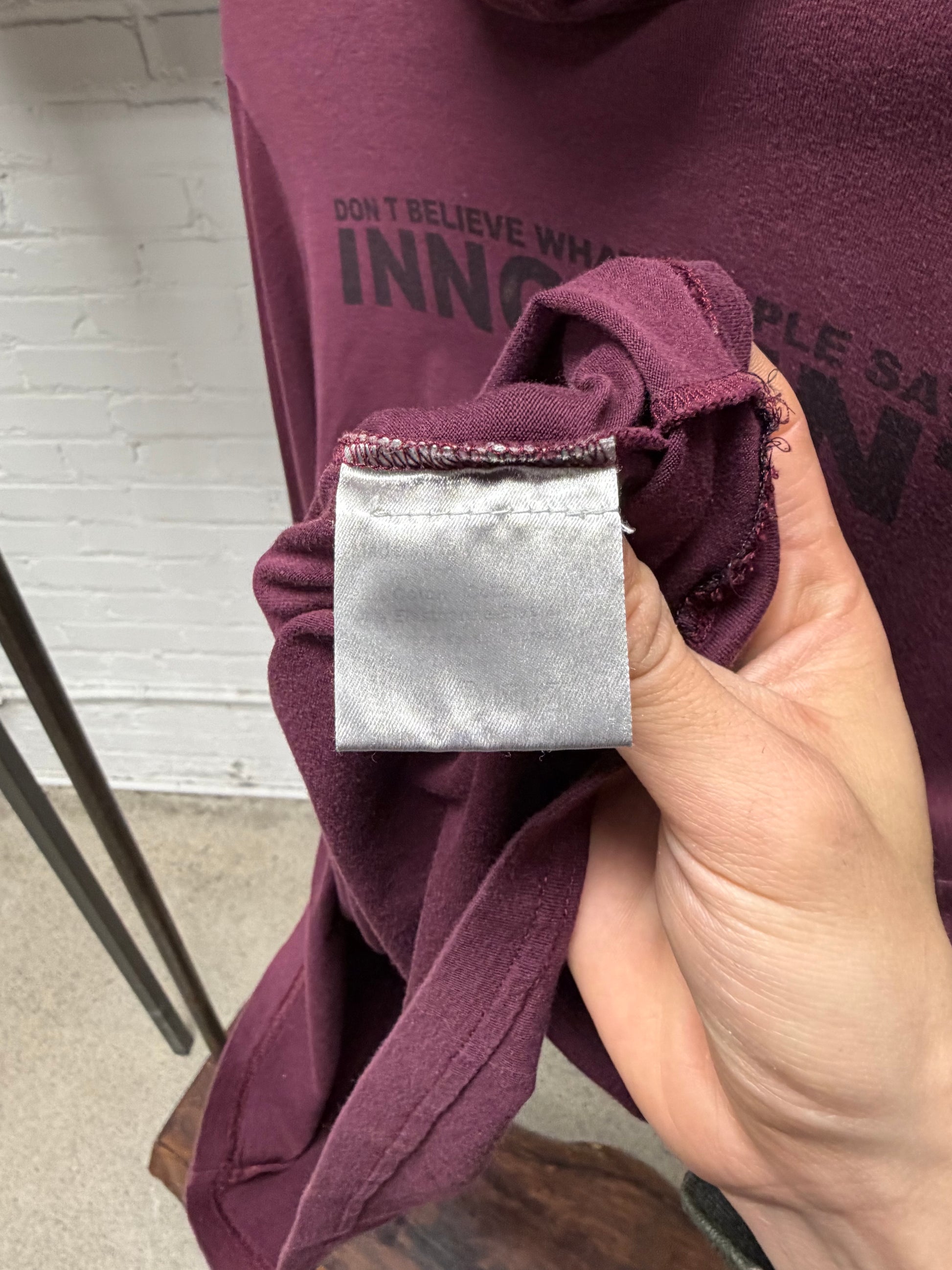 -Kris Van Assche’s first Autumn/Winter menswear collection for Dior Homme. Cheeky ‘Don’t believe what people say, I’m Innocent’ slogan across the chest.