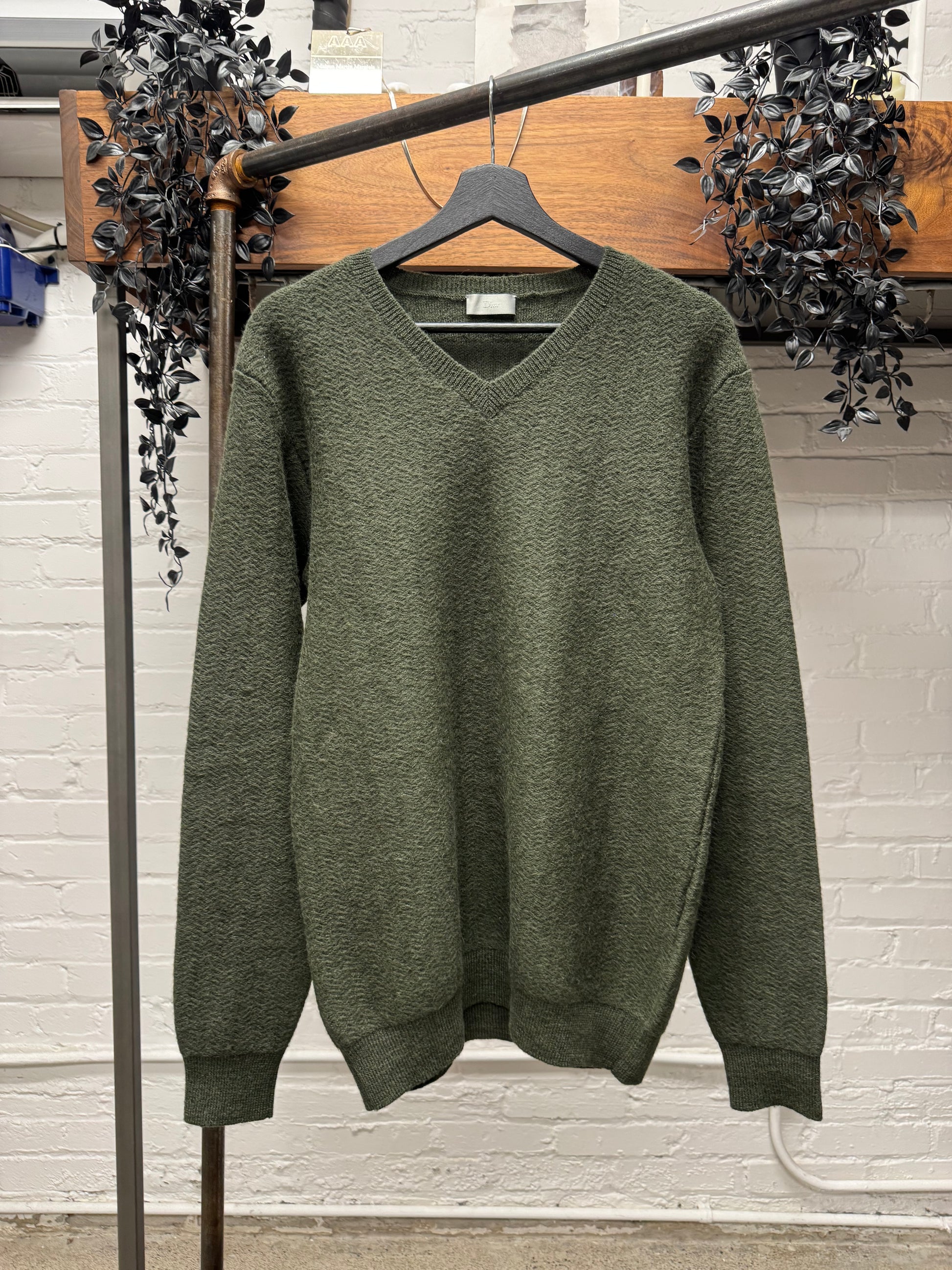 For sale is a Dior Homme ‘Forest Green’ Alpaca Wool V-Neck Sweater